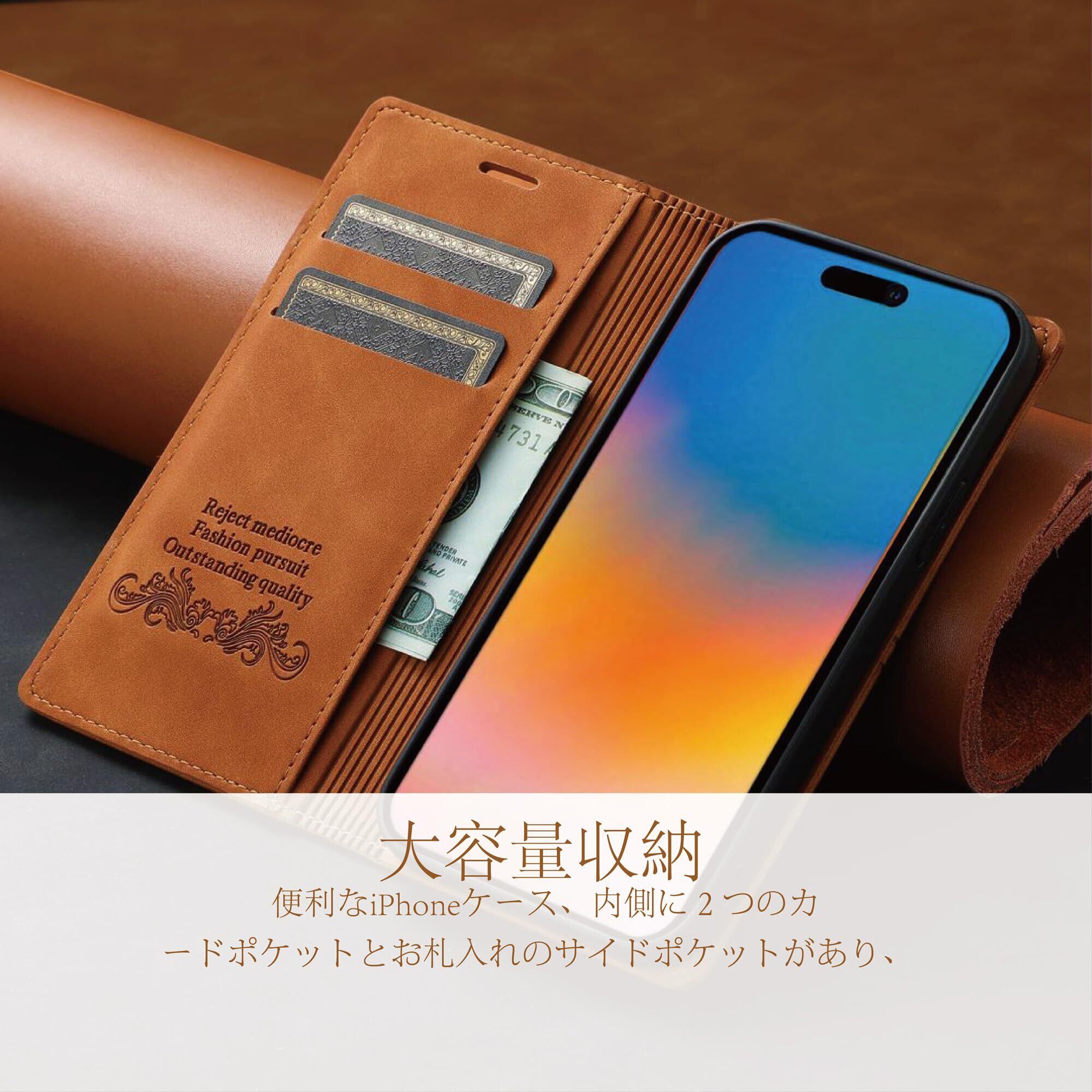 2023新型iPhone15promax用ケース iphone 15promax ケース 手帳型スマホケース iphone 15promaxケース マグネット式 iphone15promax 専用ケース シンプル高級puレザーアイフォンケース 手帳型 カード収納 アイフォン 15promax 用 手帳型 ケース スタンド機能 全面保護アイホン15promaxケース ブラウン