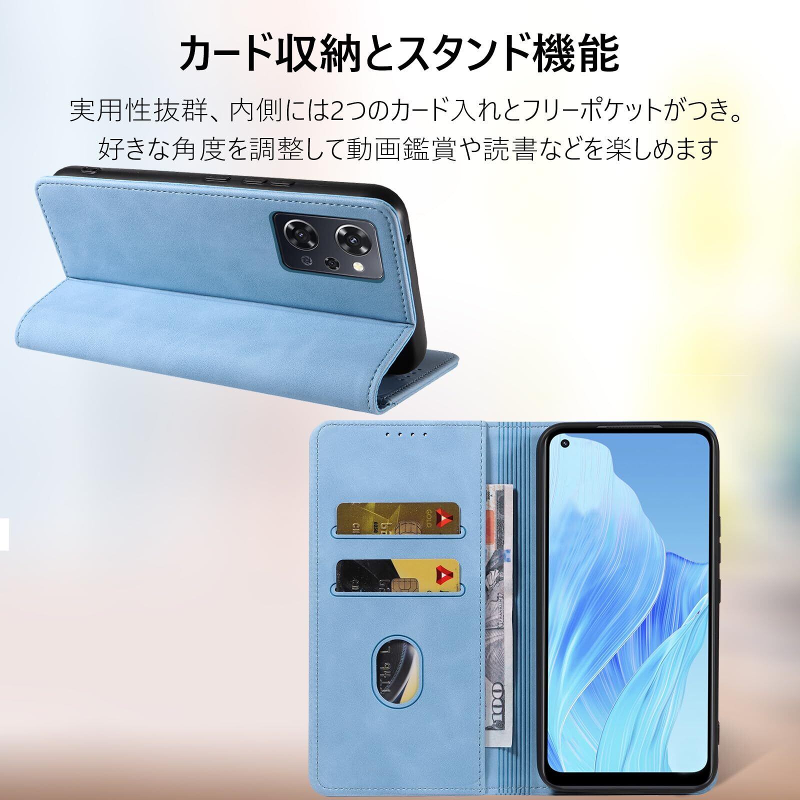 KWATUNG oppo reno7a 9a 手帳型 ケース oppo reno7 a ケース 手帳型 おしゃれ 肌感レザー oppo reno9 a ケース 手帳型 内蔵マグネット 耐衝撃 oppo reno7a スマホケース カード収納 スタンド機能 おっぽ スマホ reno7 a reno9 a ケース 全面保護【6.4インチ】ライトブルー