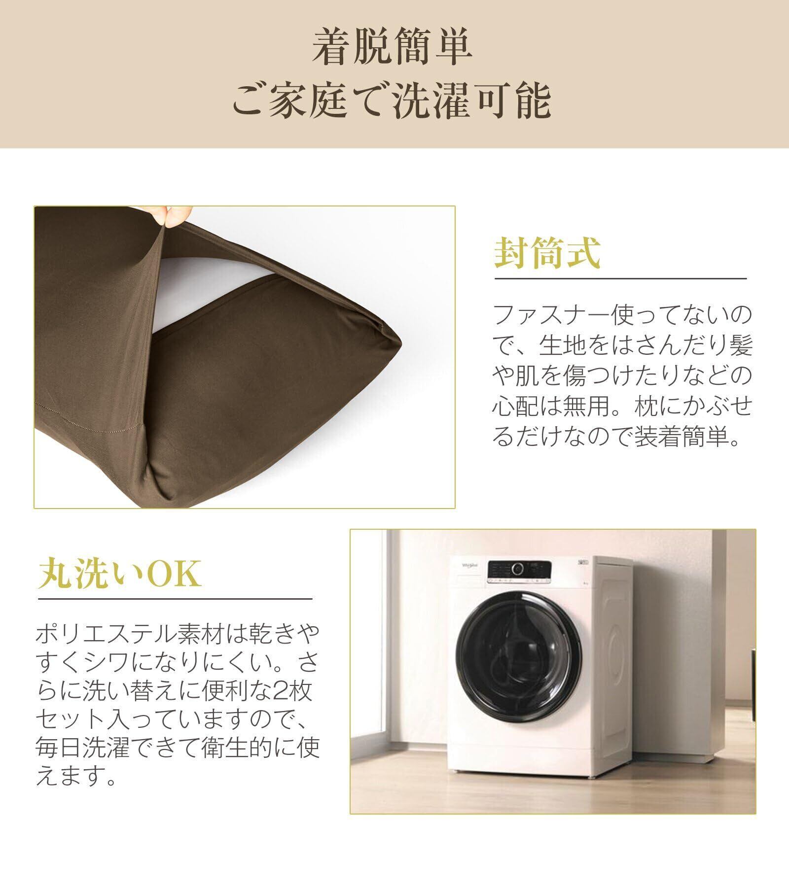 【吸水速乾の素材で朝までサラサラ】 吸水性と速乾汗性に優れたポリエステル素材を採用したまくらカバーです。汗や湿気などを素早く逃し、寝苦しい夏の夜でもサラサラ快適。速乾素材だから、雨の多い時期でもこまめに洗うことができます。また、シワになりにくいのと洗濯に強くお手入れが簡単なのもメリットです。オールシーズンお使いいただける一枚です。