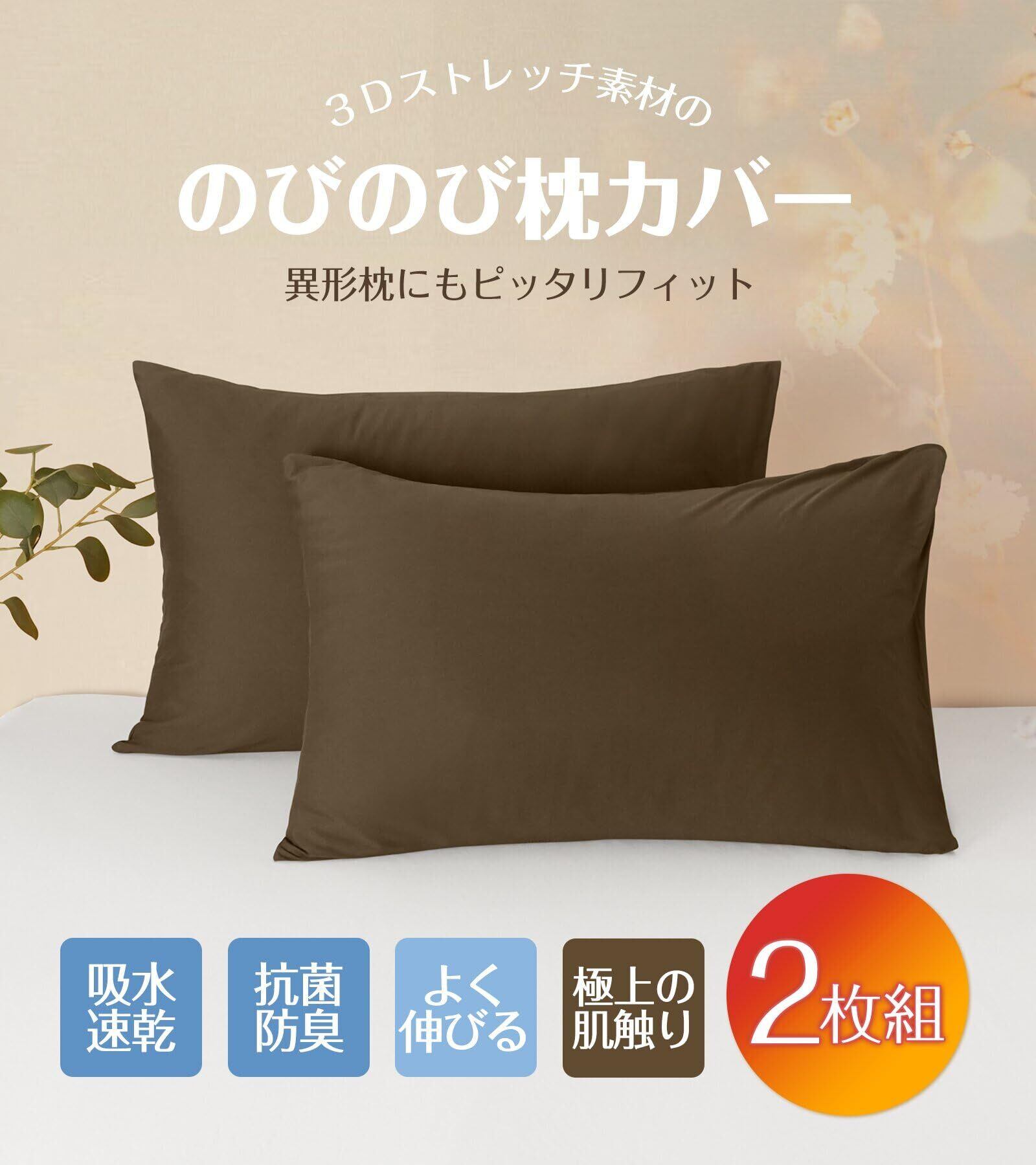 UPFINE 「吸汗速乾・CICA柔軟加工」のびのび 枕カバー 2枚組 35×50 35 55 まくらカバー よく伸びる 伸縮 3Dストレッチ 異形枕にもぴったりフィット 封筒式 オールシーズン ピローケース 抗菌防臭 柔らかい 丸洗い ブラウン