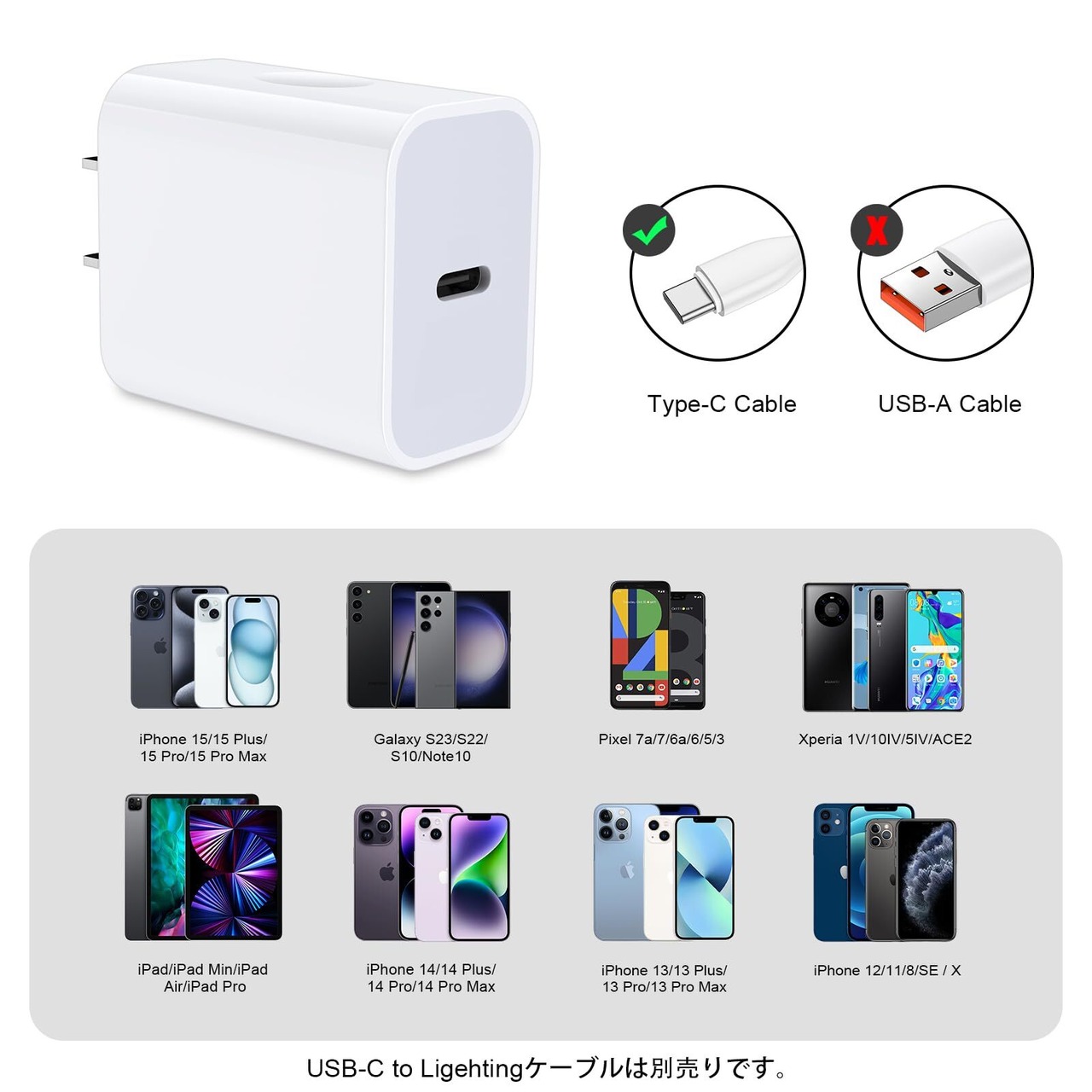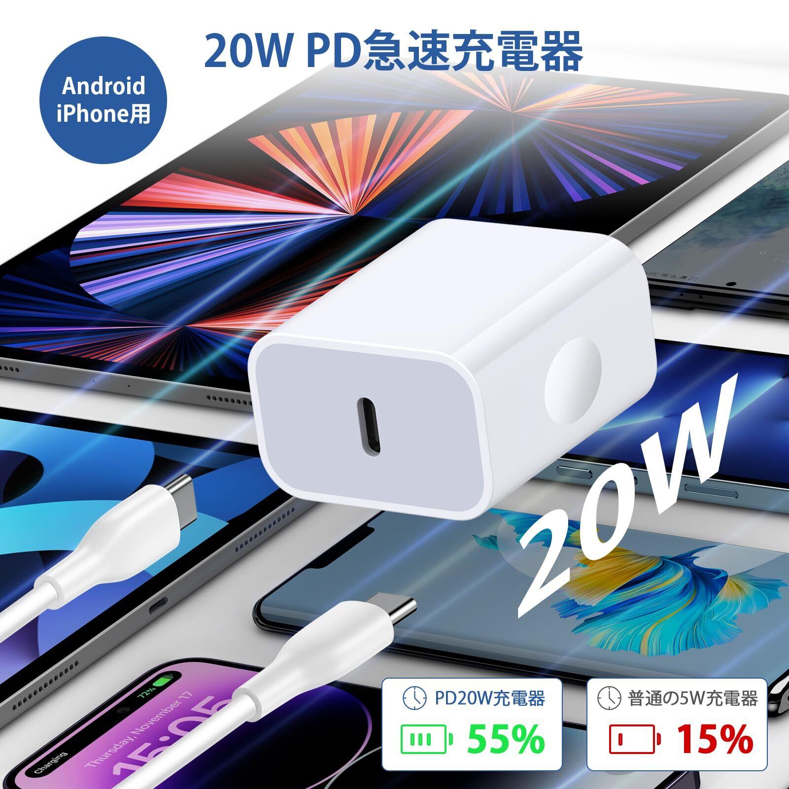 【USB Type Cの20W急速充電器】USB PD 高速充電器はPower Delivery 3.0の規格を採用して、USB-Aの5W充電器より、3倍速く急速充電できます。iPhone 15/16のスマホへ、30分の充電は最大55%までの充電ができます。Quick Charge 4.0/3.0/2.0急速充電と互換性があります。