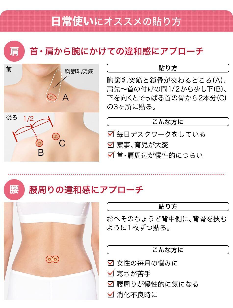 指で押して気持ちいいところ、違和感のあるところにピタっと貼るだけ。