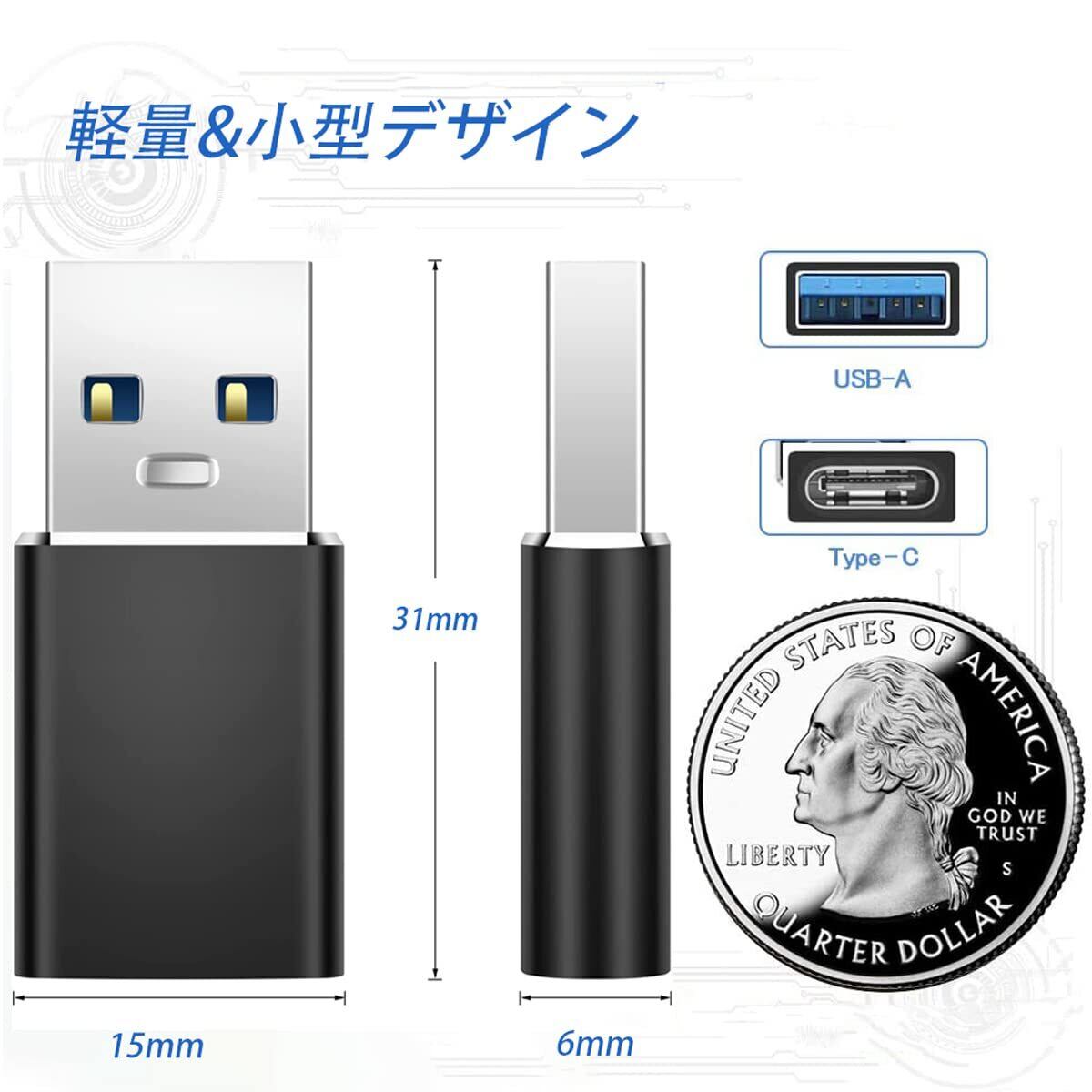 USB Type-C 変換アダプタ USB Type C(メス)to USB 3.0(オス)変換アダプタ 2個セット USB3.0高速データ転送】 QC3.0 高速充電 MacBook i Pad Pro i Phone 16/15/14 Pro Max Huawei Samsungなどに対応 (ダークブラック)