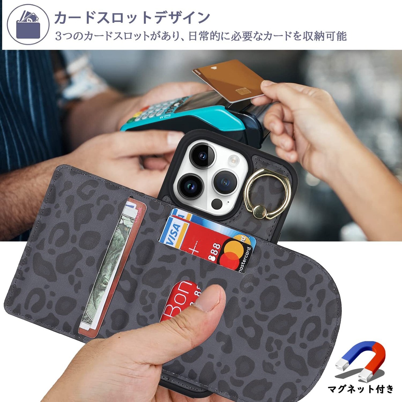 Havaya iPhone13ProMaxケース iPhone 12 pro max ケース 米軍MIL規格 iphone 13 pro max ケース スマホケース 手帳型 リング付き ヒョウ柄 耐衝撃 カード収納(アイフォン13プロマックス/あいふぉん13ProMax/いphone12promax/アイホン12プロマックス 6.7インチ対応)-ブラック ヒョウ柄
