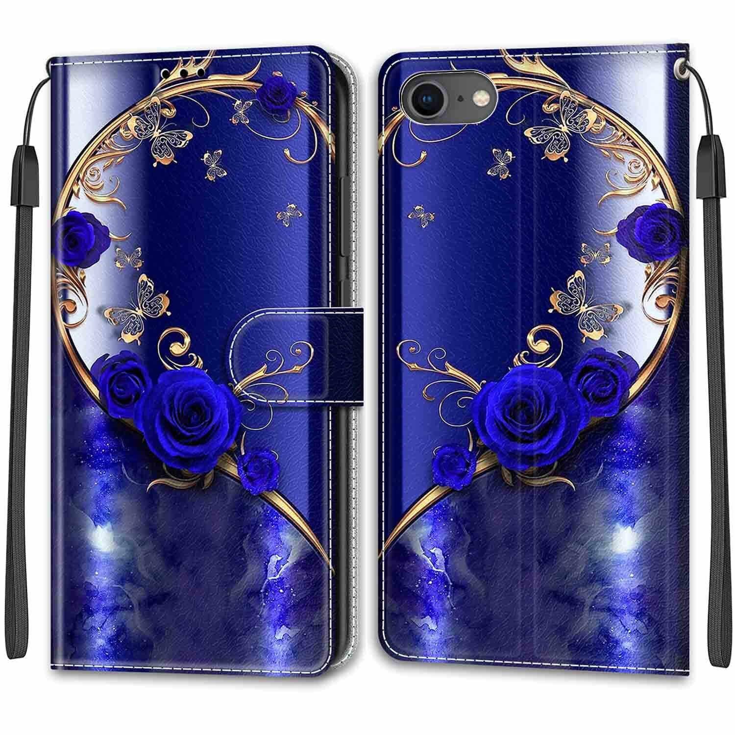 KENHONER iPhone SE ケース 第2世代 第3世代 iphone8 iphone7 ケース 手帳型 スマホケース 携帯カバー PUレザー iphoneケース se カード収納ケース マグネット式 スタンド機能アイフォンse ケース4.7インチ対応 360度保護 (iPhone SE2 iPhone SE3 iPhone8 iPhone7) バラの蝶