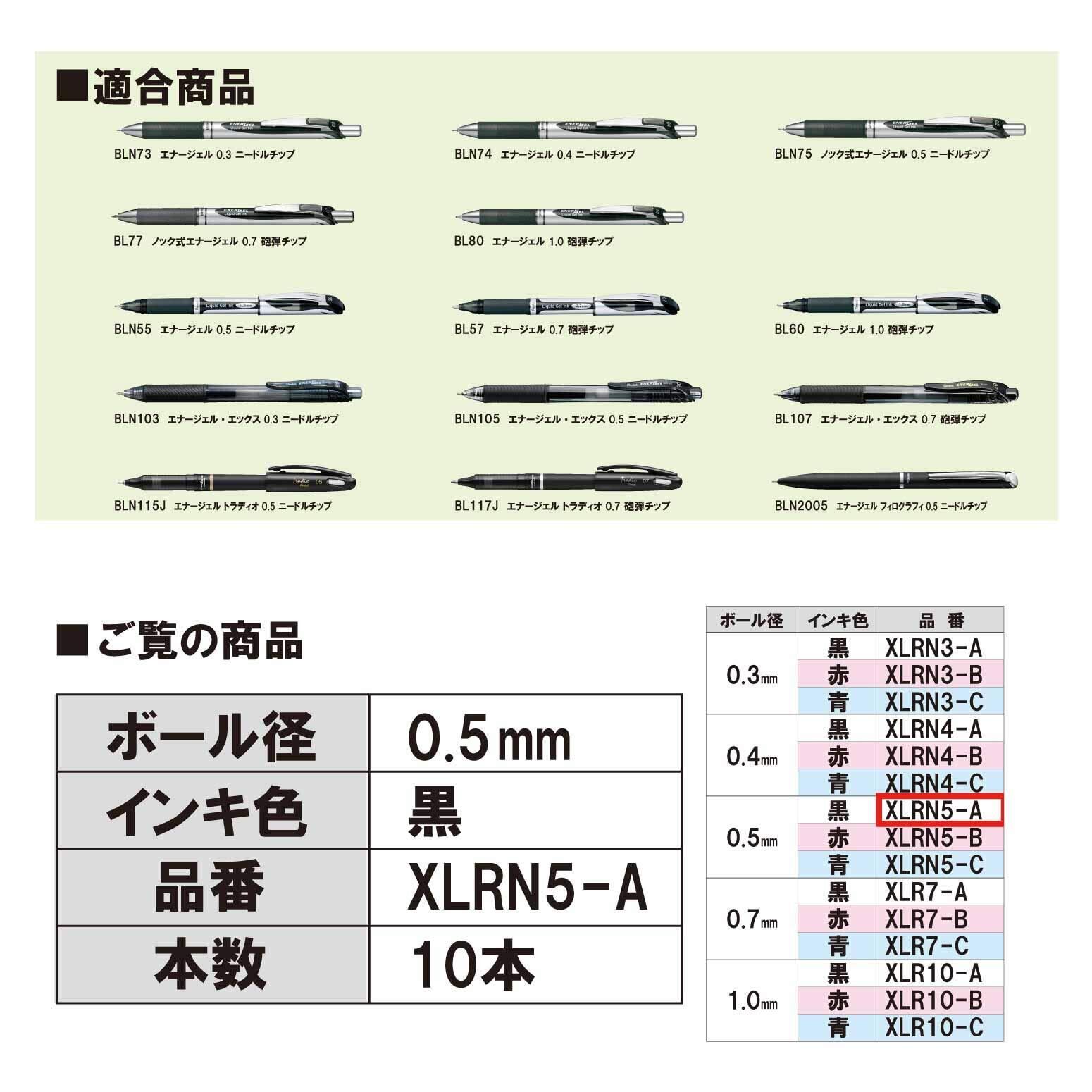 ぺんてる ボールペン替芯 エナージェル 0.5mm XLRN5-A 黒 10本