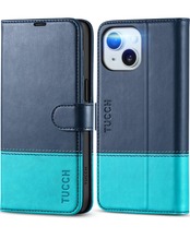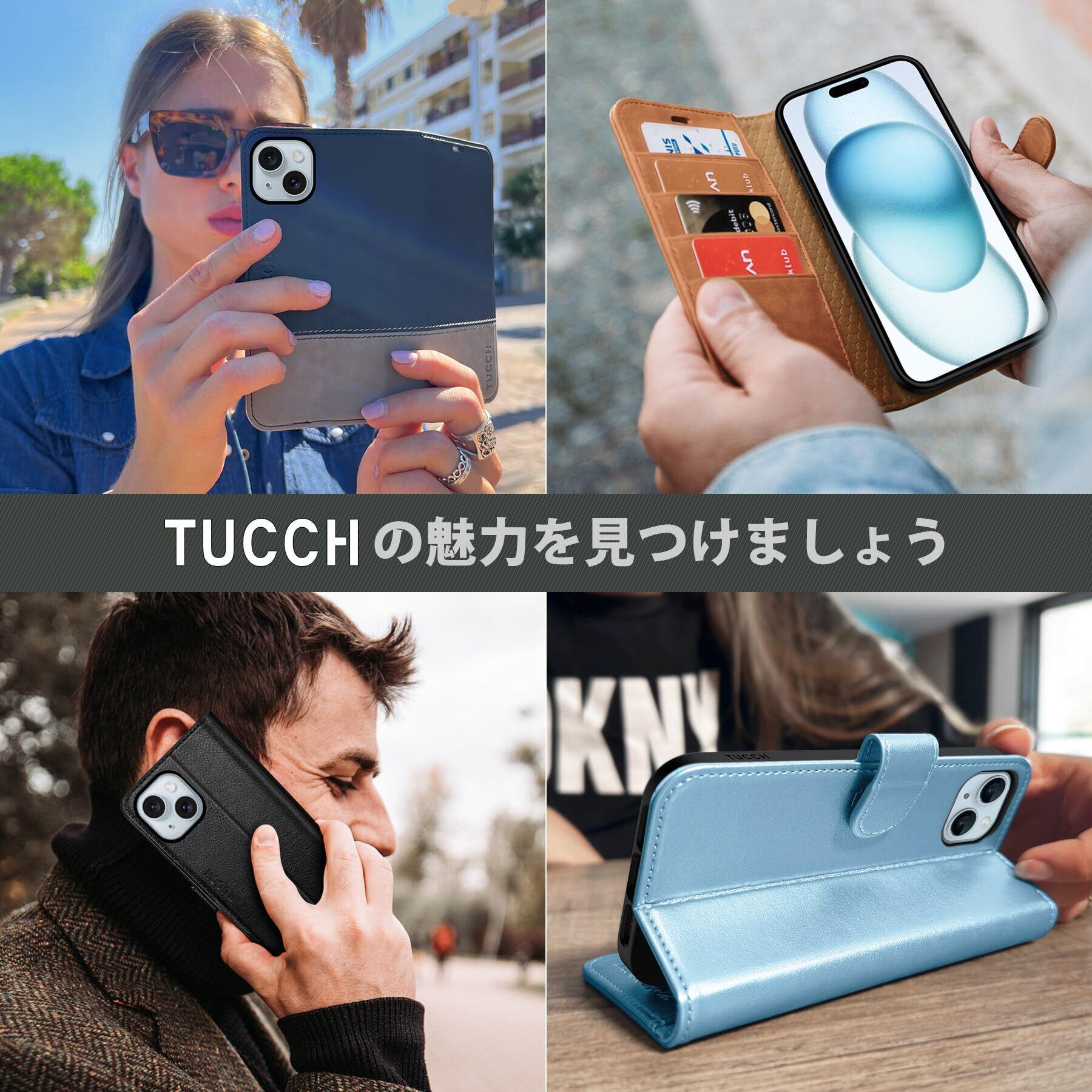 【在庫セール】TUCCH iPhone 15 対応 ケース 手帳型 iPhone15 ケース手帳型 カード収納 スタンド機能 耐衝撃 軽量 高級PU合皮 TPU素材 マグネット [RFIDブロッキング] アイフォン15 財布型 あいふぉん15ケース (2023年発売 iPhone 15 6.1インチ 5G 対応) ダークブルー&ブルー