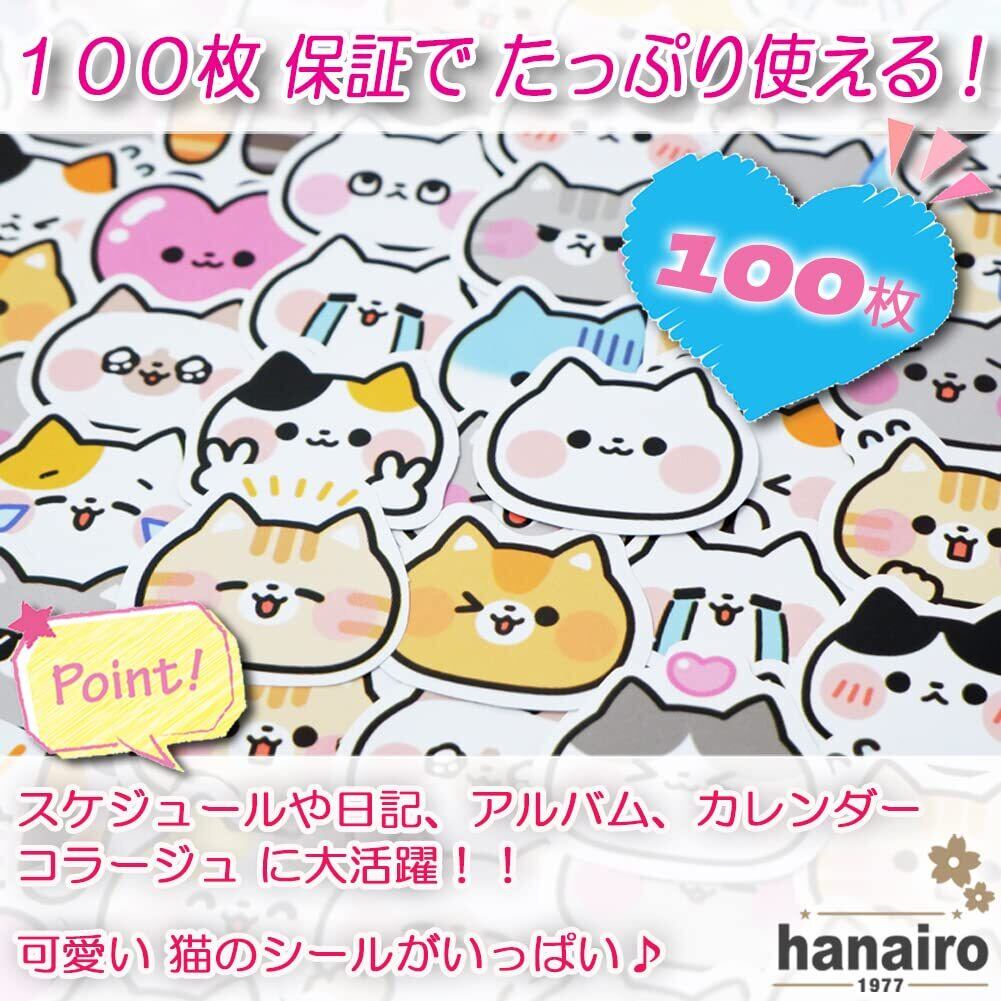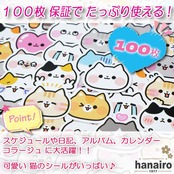 hanairo フレークシール 大量100枚セット 手帳 日記 アルバム 手作り シール ステッカー おしゃれ (Cats)