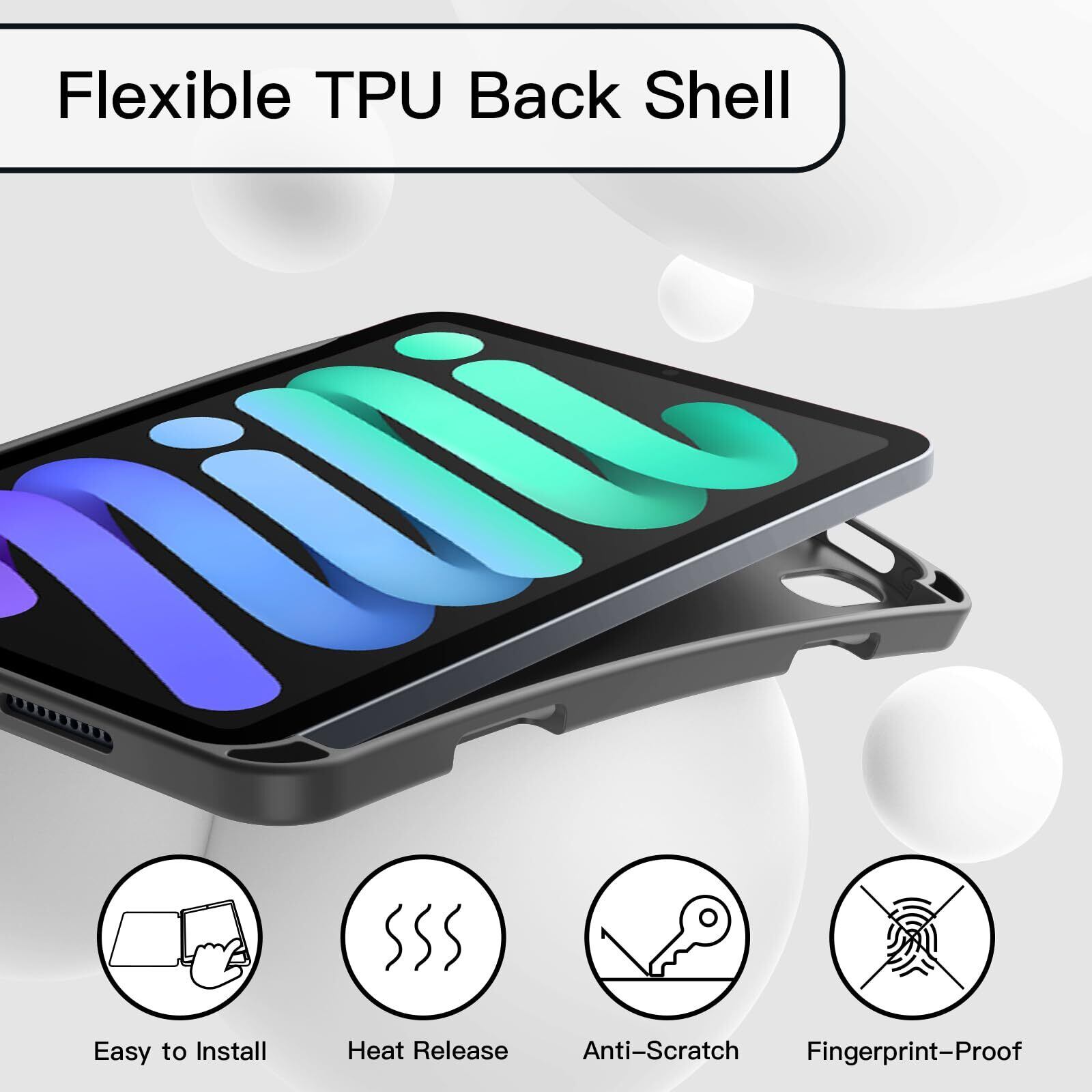 JEDirect iPad mini (A17 Pro 2024 モデル、第7世代) / mini6 ケース (8.3インチ、2021モデル、第6世代)用 Pencilホルダー付き ソフトTPUバック スリム保護カバー オートウェイクアップ/スリープ機能付き (スペースグレイ)