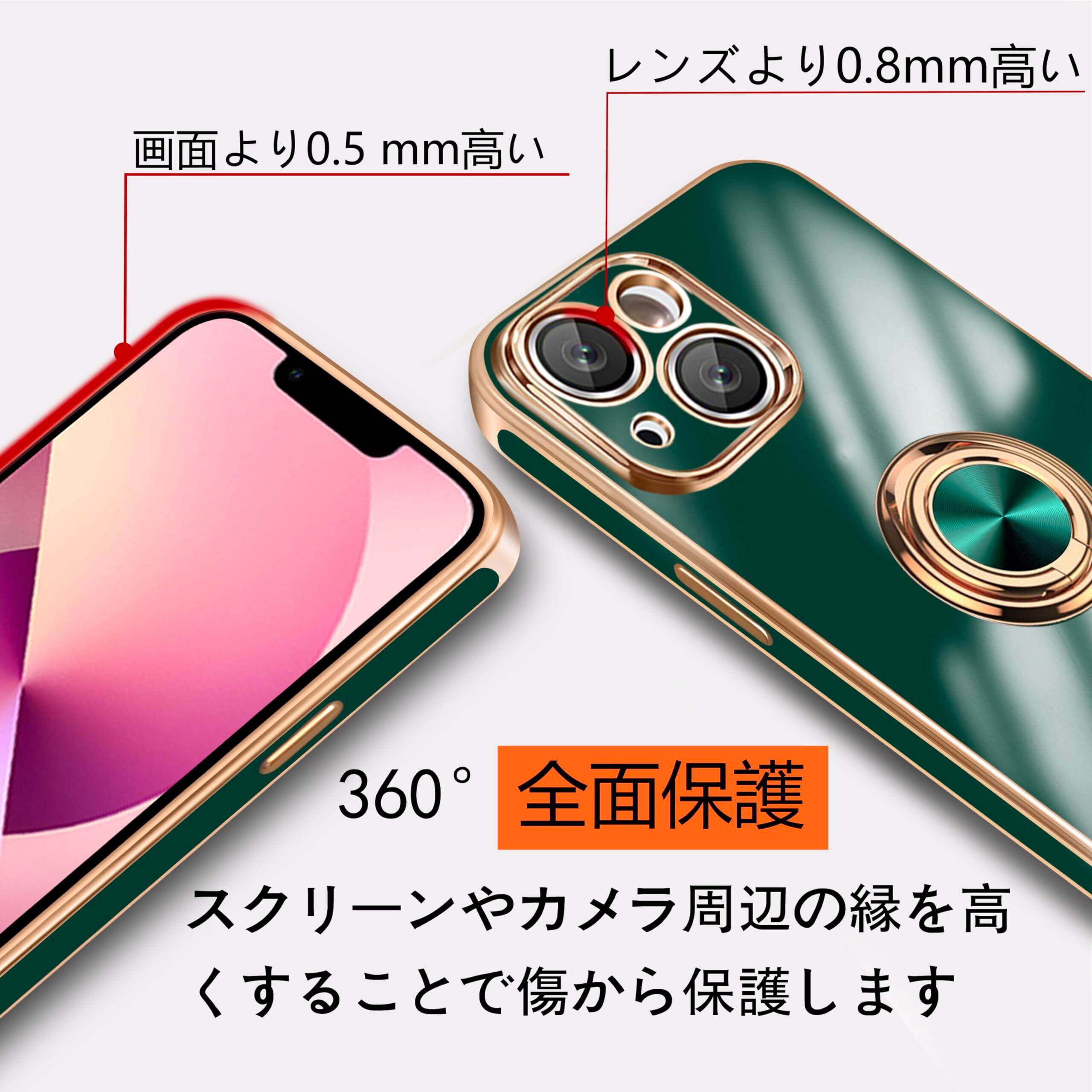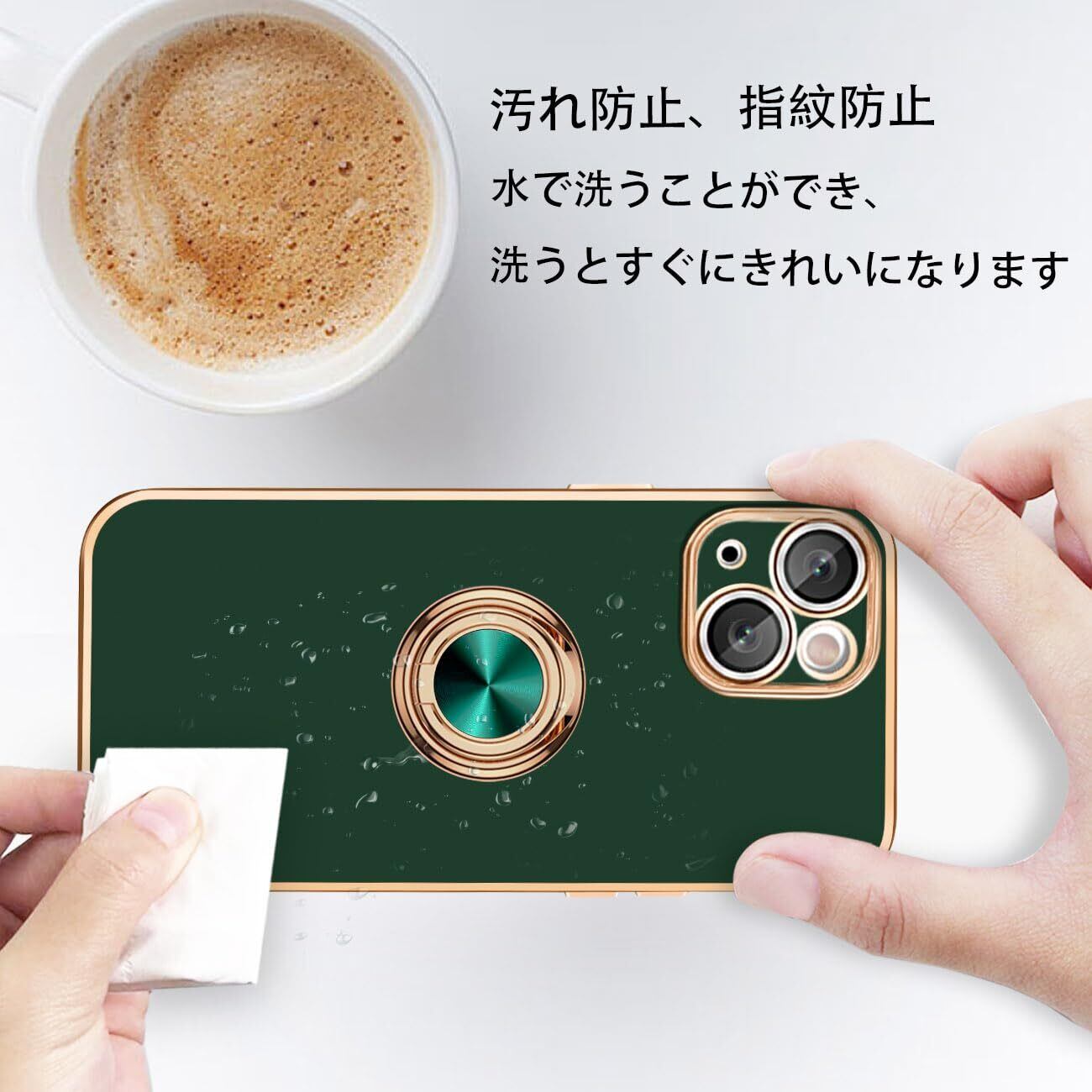 【特価商品】KEHUALLE iPhone 14 ケース リング付き スマホケース いphone 14 ケース 耐衝撃 メッキ加工 TPU カバー 車載ホルダー対応 360度回転 多機能 スタンド機能 ストラップホール付き アイフォン 14 ケース 6.1 インチ用 (ダークグリーン) | ニコニコSHOP