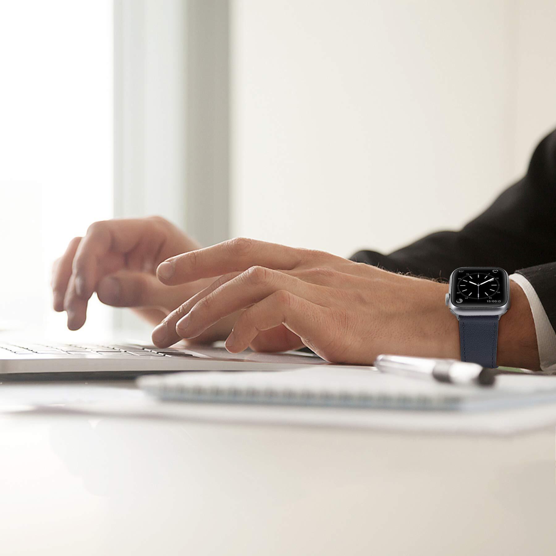 【特価セール】コンパチブル Apple Watch バンド 49mm 45mm 44mm 42mm 41mm 40mm 38mm 本革 ビジネススタイル コンパチブル アップルウォッチバンド コンパチブル Apple Watch Series Ultra2/Ultra/SE2/SE/10/9/8/7/6/5/4/3/2/1(41/40/38mm ダークブルー)