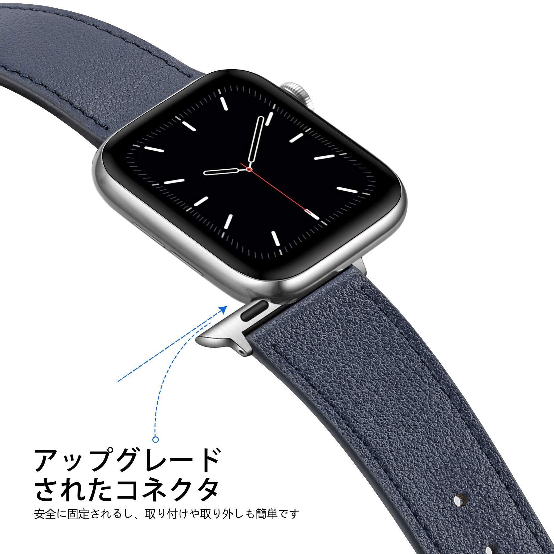 コンパチブル Apple Watch バンド 49mm 45mm 44mm 42mm 41mm 40mm 38mm 本革 ビジネススタイル コンパチブル アップルウォッチバンド コンパチブル Apple Watch Series Ultra2/Ultra/SE2/SE/10/9/8/7/6/5/4/3/2/1(41/40/38mm ダークブルー)