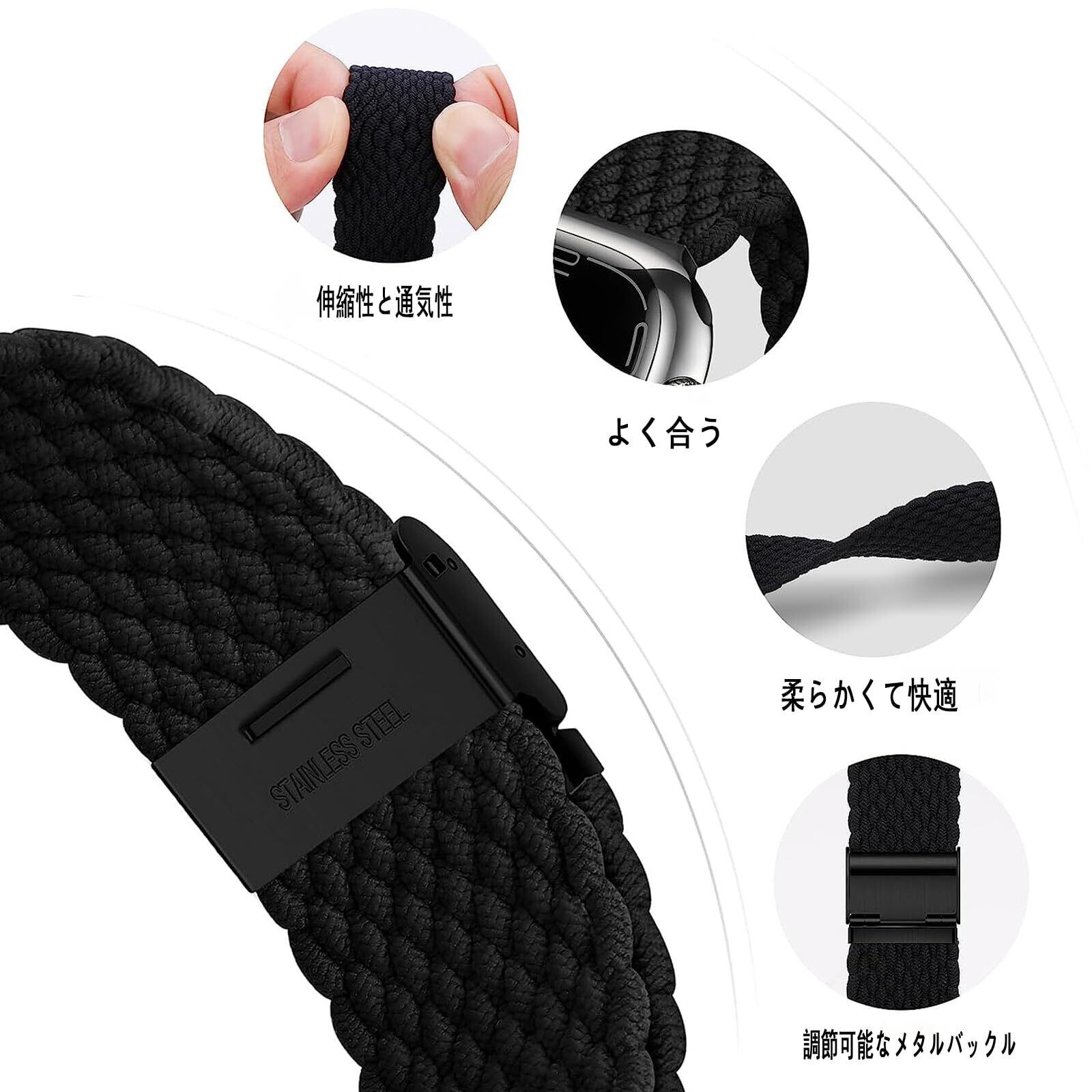 ブレイデッドソロループベルトコンパチブルApple Watch Series 10 9 8 7 6 5 4 SE Ultra。ウォッチケースのサイズに応じて、対応するバンドサイズ42mm 41mm 40mmまたは49mm 46mm 45mm 44mmを選択してください。「 注文には時計本体は含まれていません」