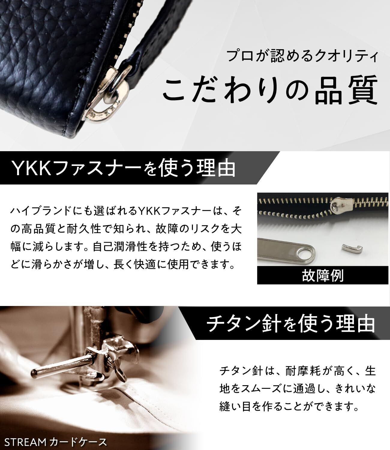 【YKKファスナー】財布の故障の原因で多いファスナー。こちらのカードケースでは耐久性となめらかな開閉ができる、YKK社製のファスナーを使用しています。