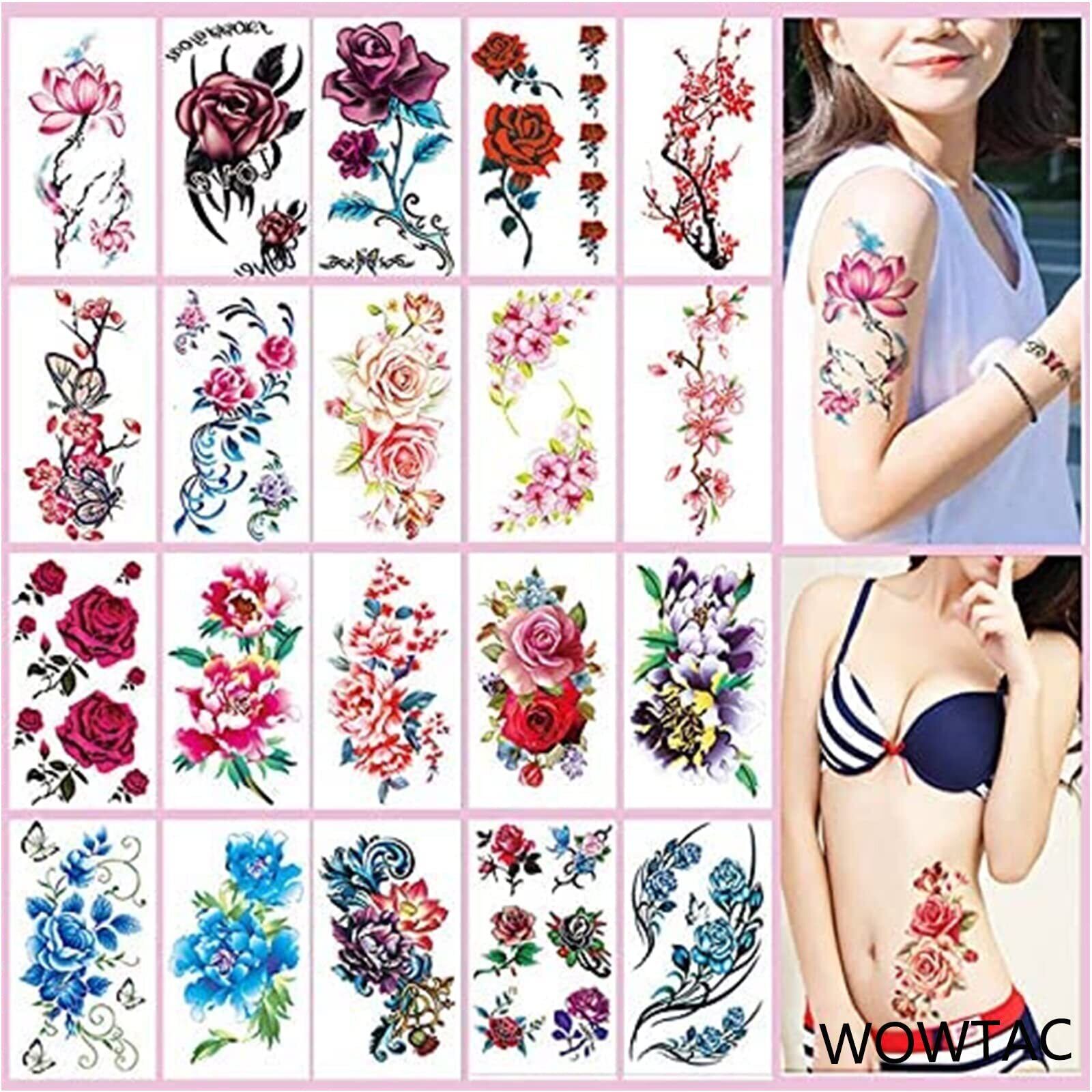 タトゥーシール ボディーシール 花 3D レディース WOWTAC 刺青シール 長持ち 防水 簡単貼る 可愛い おしゃれ 20枚セット (花)