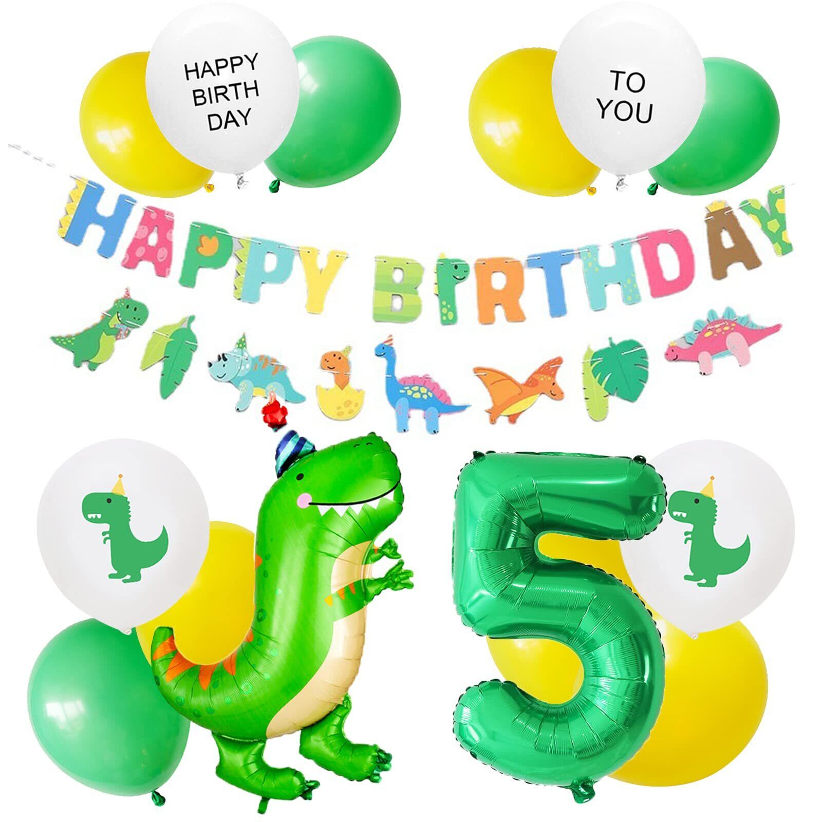 【新着商品】誕生日 飾り付け 風船 バルーン 恐竜 ダイナソー 数字5 5歳 ナンバー バースデー パーティー デコレーション セット HAPPY BIRTHDAY ガーランド シンプル 装飾 キッズバースデーキット お祝い 写真背景 インスタ映え 子供 男の子 カワイイ | ニコニコSHOP