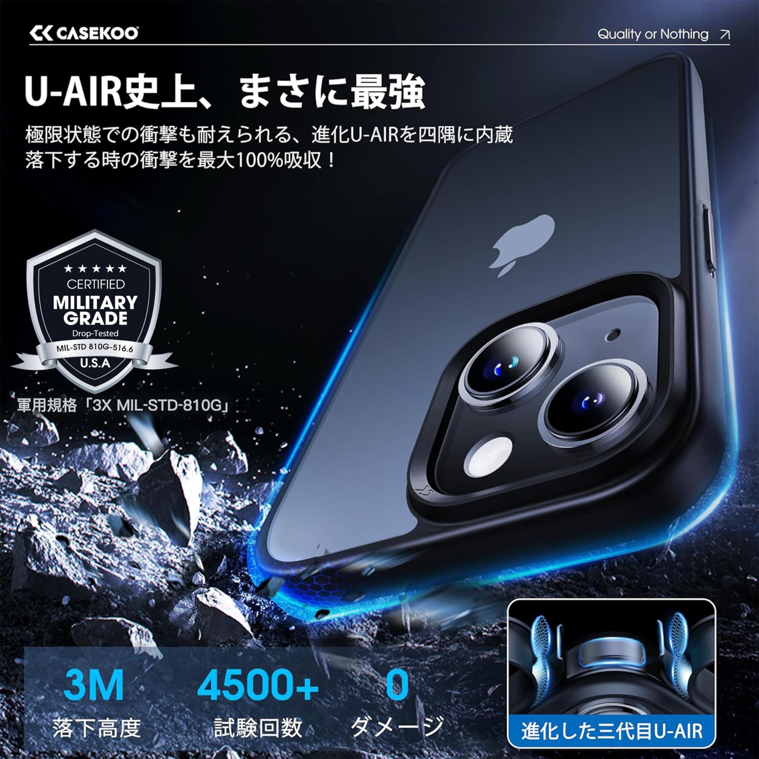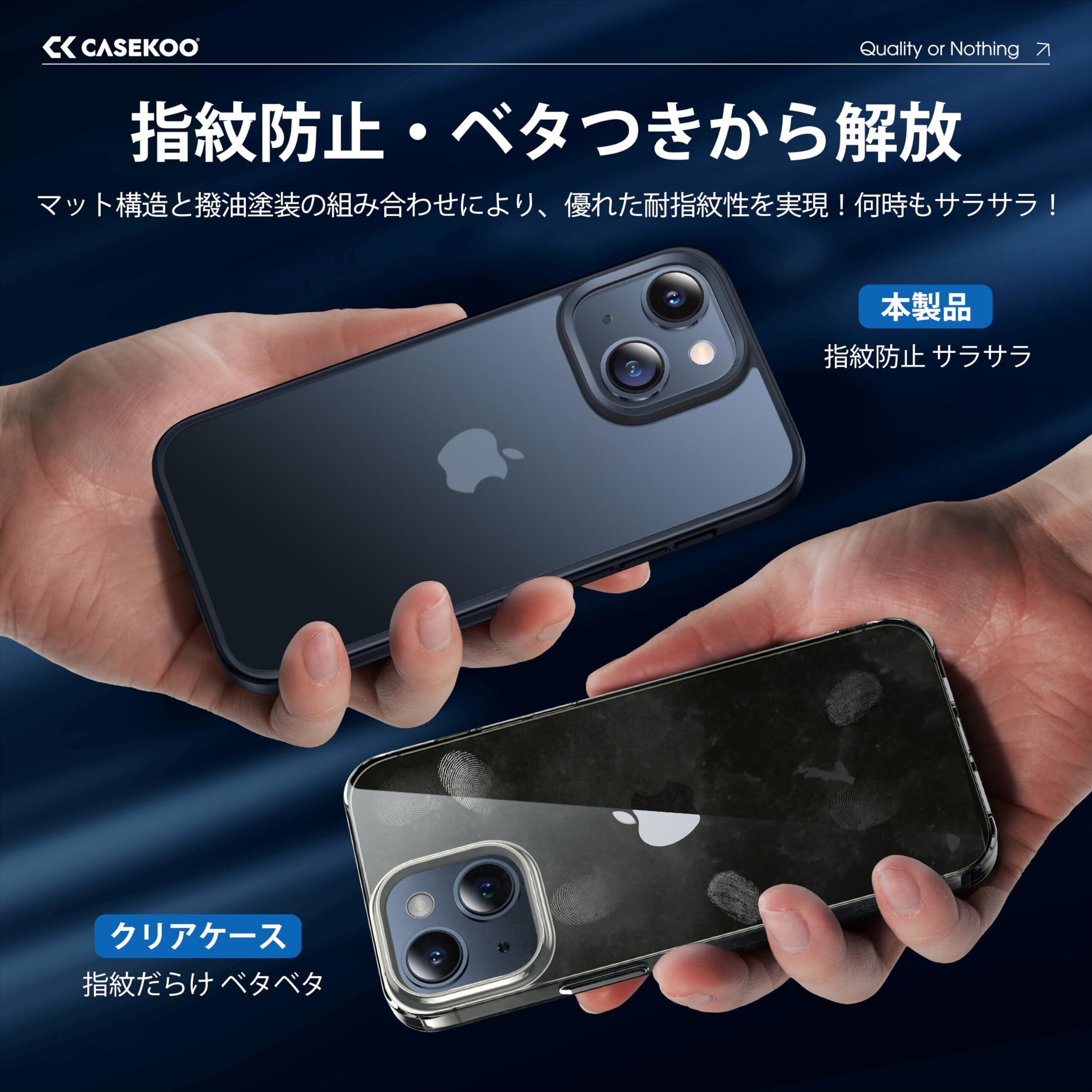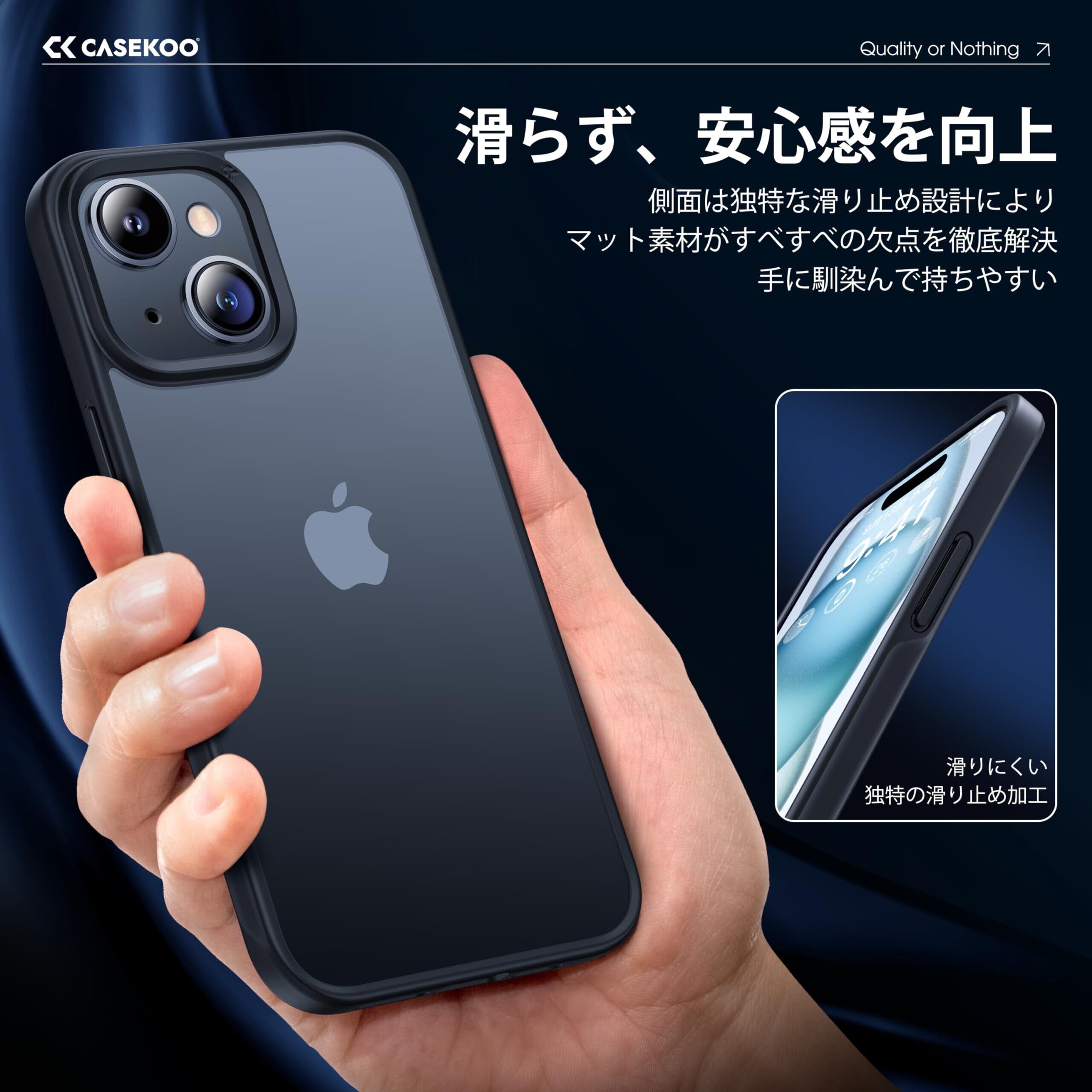 【米軍MIL規格・指紋防止】CASEKOO iPhone 15 用 ケース 耐衝撃 滑り止め 指紋防止 米軍MIL規格 マット仕上げ ストラップホール付き 黄変防止 耐久性 カバー ワイヤレス充電対応 アイフォン 15 用 6.1 インチ ケース(マットブラック)