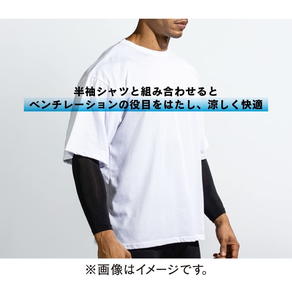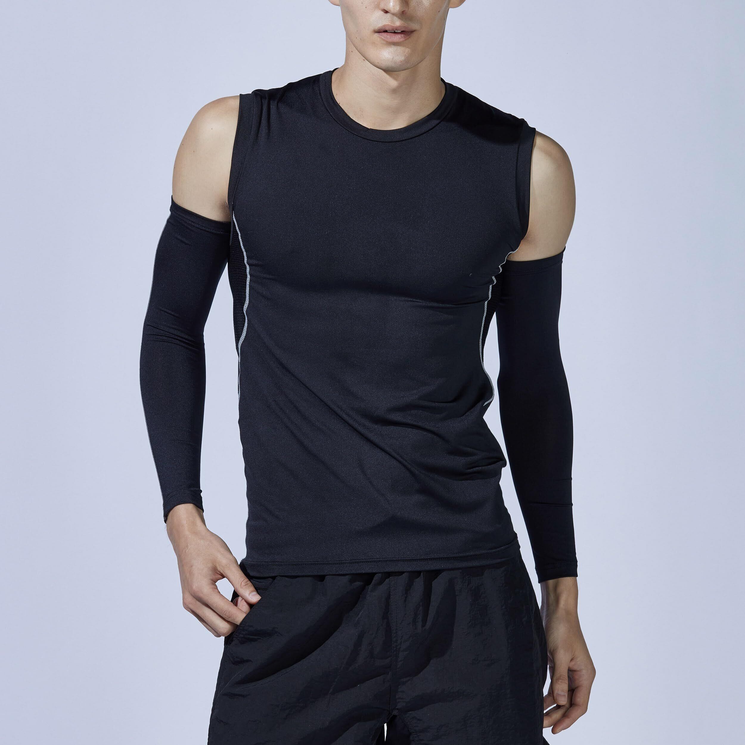 ノースリーブ、半袖のウェアと組み合わせ可能なアームカバー。紫外線をカットするだけでなく、接触冷感と吸汗速乾機能を備え、不快な汗のベタつきを抑えます。