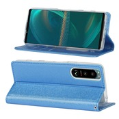 Pelanty Xperia 5 III ケース Sony Xperia5 III SO-53B SOG05 ケース手帳型 Xperia5iii so53b 財布型カバー case PUレザー 薄型 スマホケース ストラップ付き ベルトなし カード収納 マグネット式 スタンド機能 ソニー エクスペリア5 第3世代 携帯カバー 滑り止め 全面保護 耐衝撃 軽量 (ブルー)