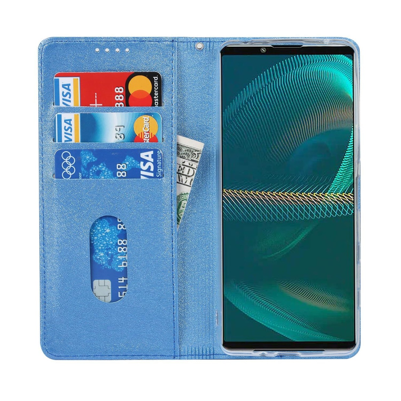 【数量限定】Pelanty Xperia 5 III ケース Sony Xperia5 III SO-53B SOG05 ケース手帳型 Xperia5iii so53b 財布型カバー case PUレザー 薄型 スマホケース ストラップ付き ベルトなし カード収納 マグネット式 スタンド機能 ソニー エクスペリア5 第3世代 携帯カバー 滑り止め 全面保護 耐衝撃 軽量 (ブルー) | ニコニコSHOP