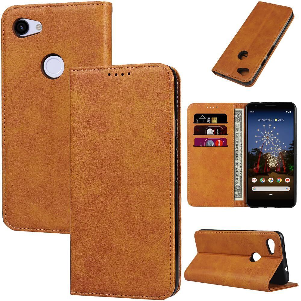 google pixel 3a ケース 手帳型 googlepixel3a ケース 手帳型 google pixel 3a ケース 耐衝撃 グーグルピクセル3a ケース 手帳型 グーグルピクセル3a カバー 手帳型 グーグルピクセル3a スマホケース 手帳型 カードスロット、キックスタンド レザー(ライトブラウン)