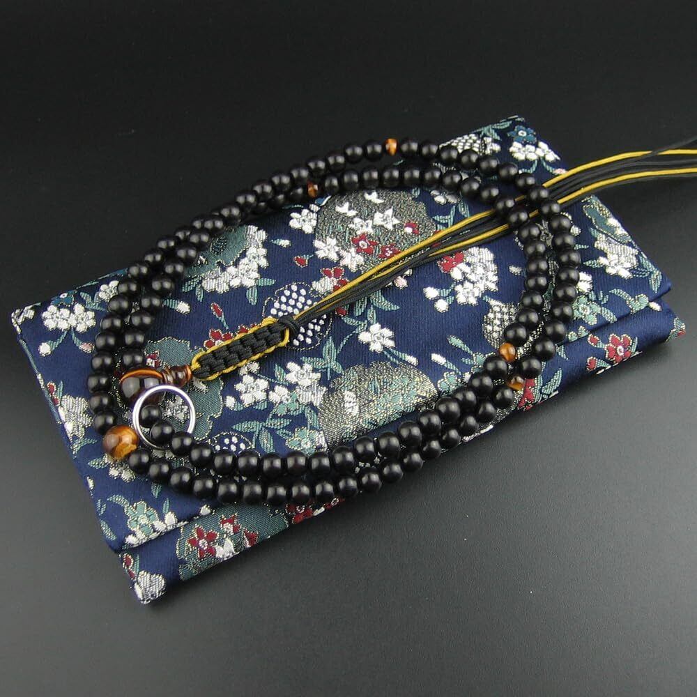 曹洞宗男性用の正式なお数珠でございます。 素材は、黒檀でございます。黒檀は唐木の一つで、代表的な銘木です、材質は緻密で重く堅いく心材の部分が黒く、細工用の木材として、家具や仏壇、仏具、建材、楽器、ブラシの柄などに使用されています。アクセントに虎目石を使用することにより、高級感がましております。房にはお洒落な2色編みにて仕上げさせて頂きました。