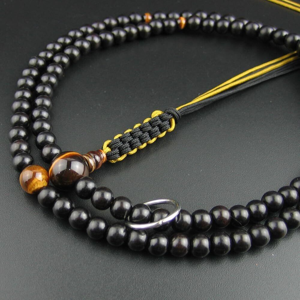 素材 珠の数 主珠108個 珠の素材 黒檀 主珠:黒檀(約7*8mm) 親珠:虎目石(約14mm) 向珠:虎目石(約10mm) 天珠:虎目石(約6mm) 房:2色紐房 サイズ: 尺2