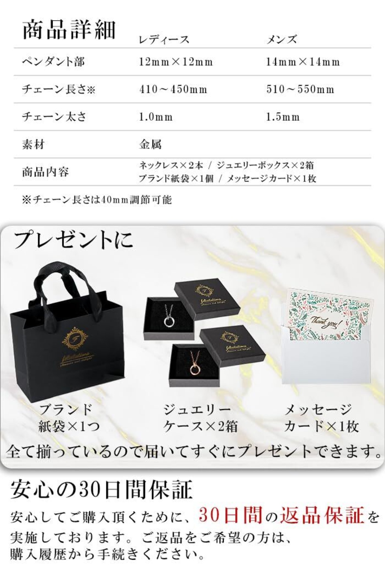 【商品内容】ネックレス2本、ネックレス専用BOX2個、メッセージカード1枚、ブランド紙袋1袋