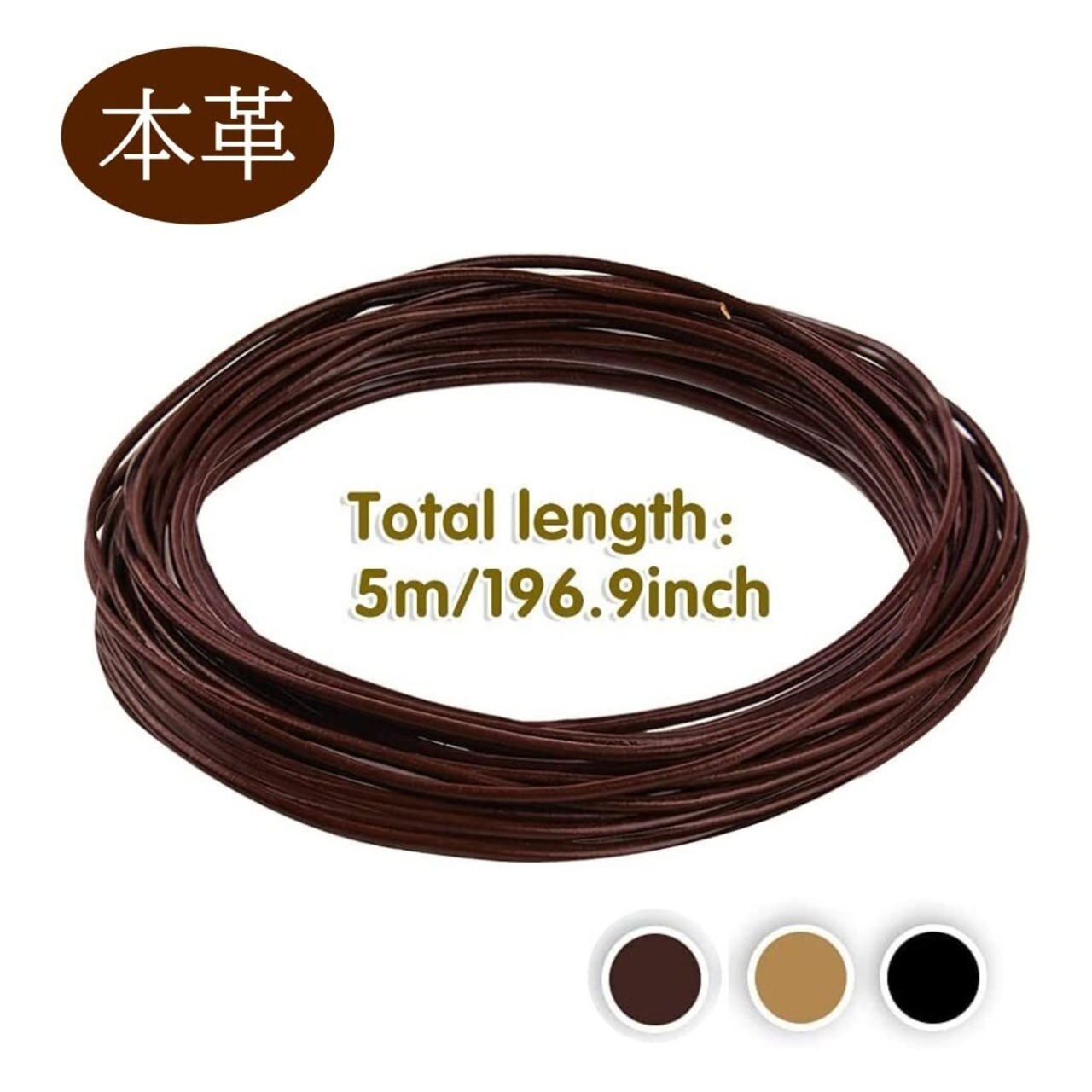 素材:本革(牛革) 長さ:5メートル 幅:2ミリ カラー:ベージュ , ブラウン , ブラック