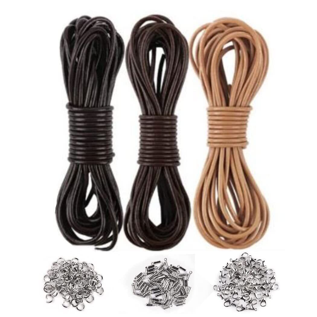 HappyHome 革ひも 2mm 本革 革紐 アクセサリー用紐 レザークラフト紐 5m カニカン マルカン エンドパーツ セット 手芸材料 DIY紐