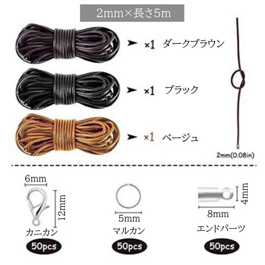 セット内容:革ひも3本 礎パーツ150ピース (カニカン50個、マルカン50個、エンドパーツ50個)
