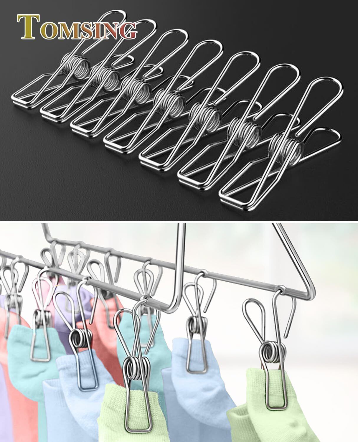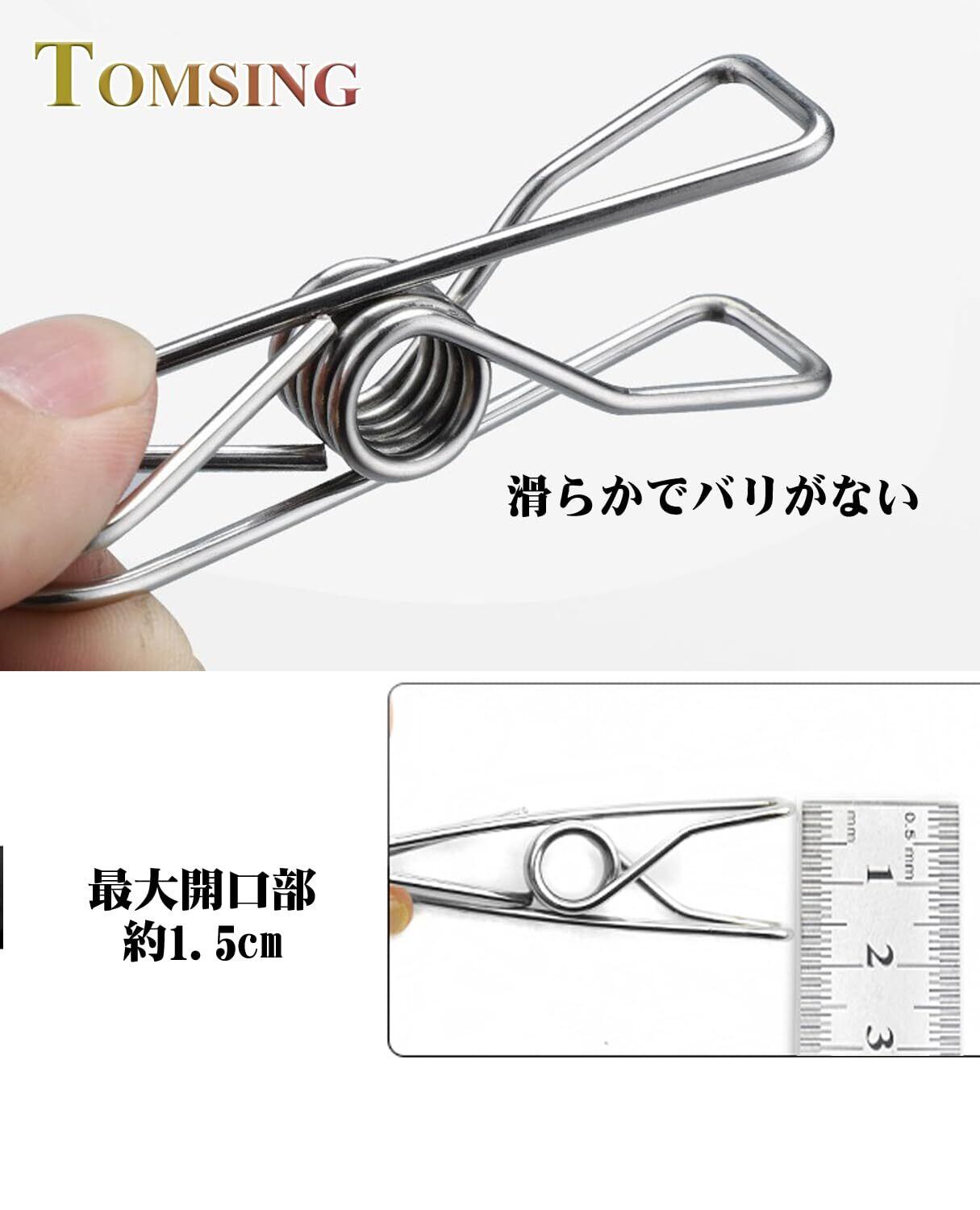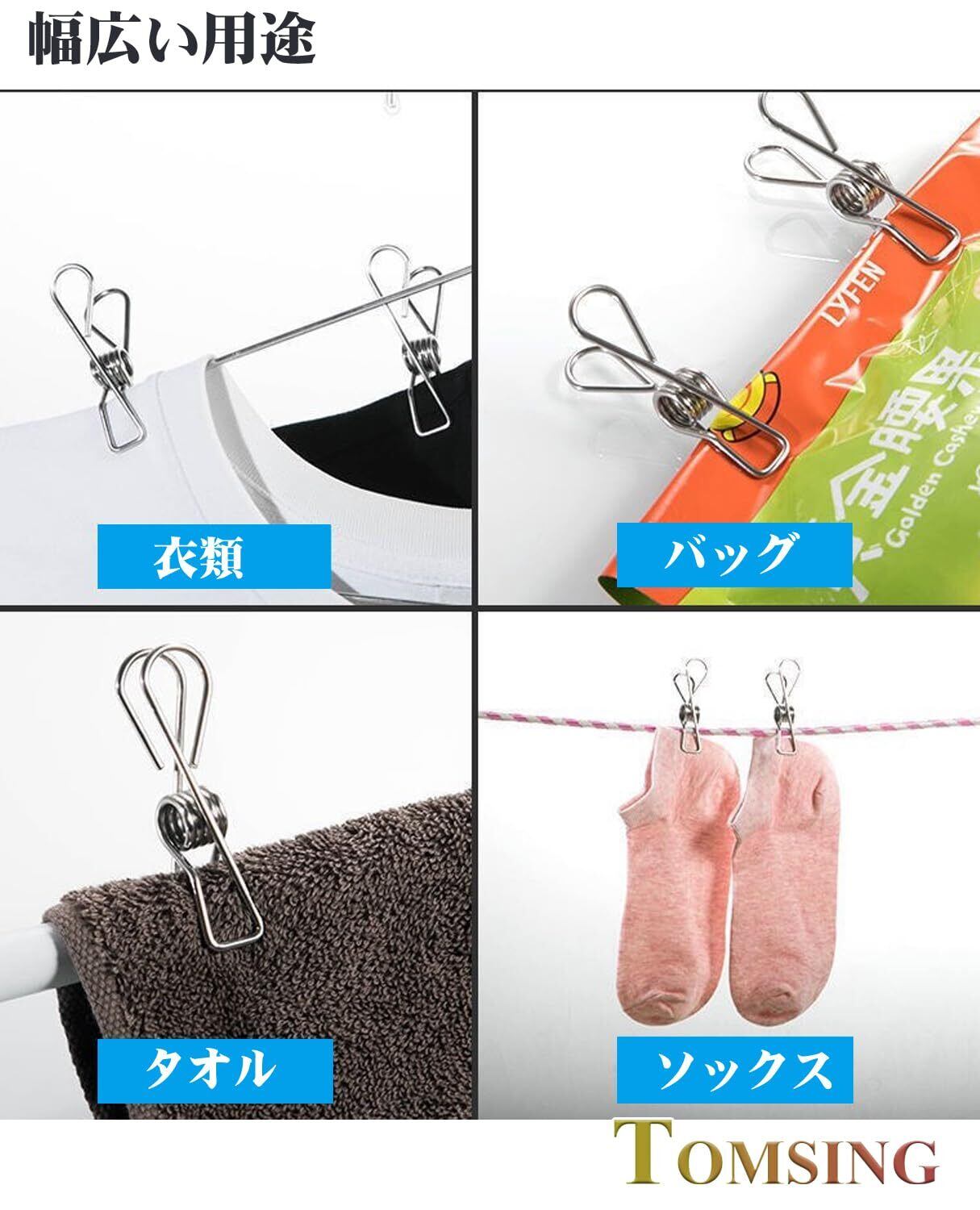 TOMSING 20個セット 洗濯ばさみ 洗濯バサミ ステンレス 強力 防風 竿ばさみ ピンチ 洗濯物干 ズボン ハンガー クリップ 錆に強い (シルバー·20pcs,5.2cm)