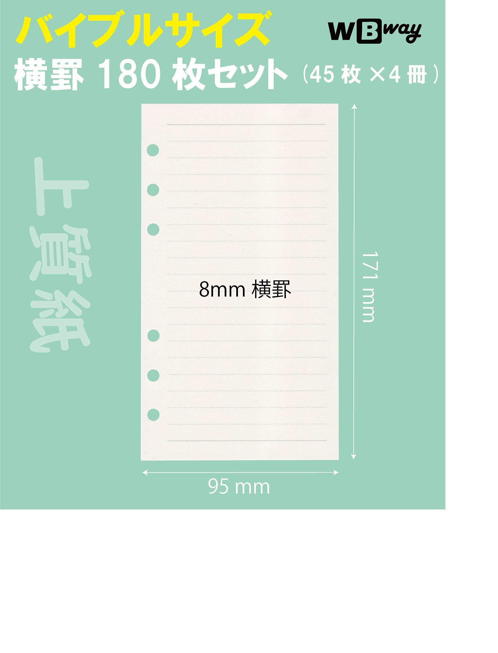 WBway 手帳リフィル バイブルサイズ 横罫 【4冊セット】 180枚 6穴 システム手帳 メモ帳 リフィル バイブル 6穴 レフィル 中身 A6 (横罫)