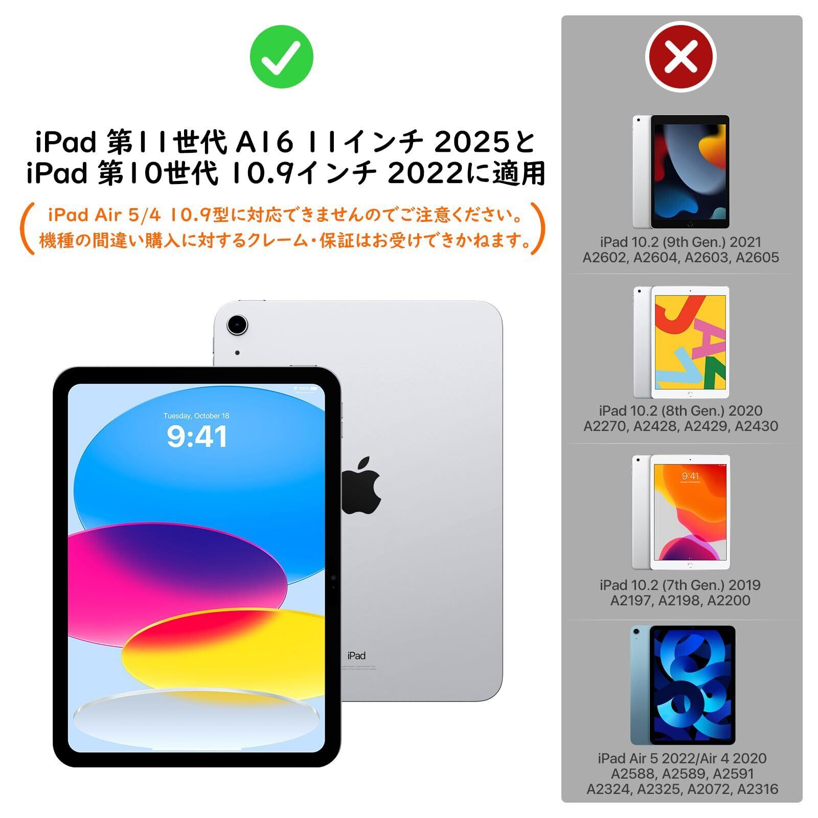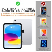 「対応機種」 2025年新発売のiPad 第11世代 11インチ(A16)(モデル番号:A3355/A3356)及び2022年発売のiPad 第10世代 10.9インチ(モデル番号:A2696/A2757/A2777)に向けの専用スマートカバーとなります。iPad Air 10.9 第5/4世代、又は他の機種に対応出来ません。ご購入前にお手元のタブレット機種をご確認ください。