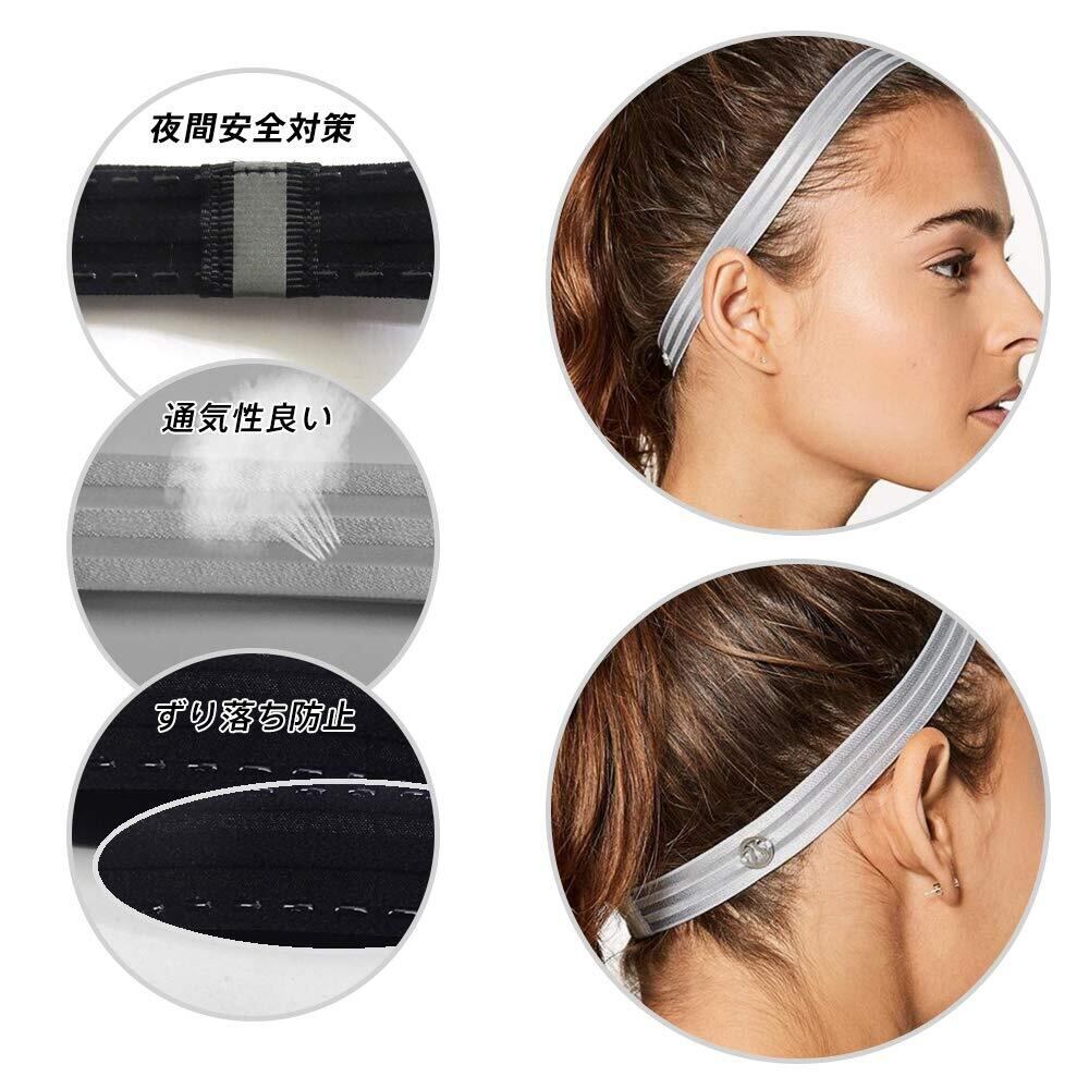【滑り止め設計・夜間安全対策】裏面にいい肌触りのシリコンゴムが施されていています、使用中にヘアバンドがずり落ちるのを防ぐことができます。ベルト部分に反射材を付けて、夜でも心配なく自由に運動できます。