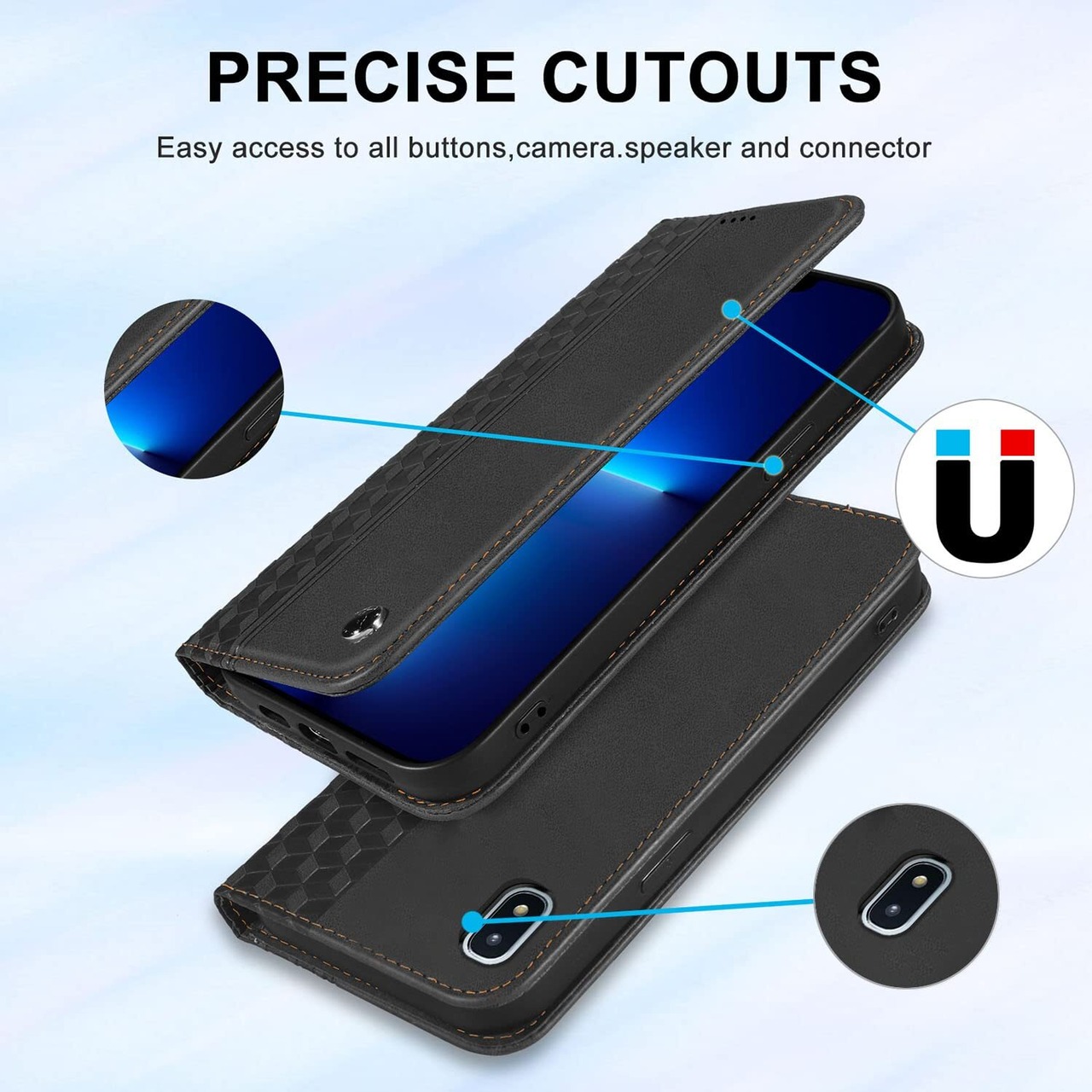 カードポケット:ケースの裏側にカードポケット3つ付き、現金、チケット、IDカードなどを入れることができます。ちょっとしたお出かけにもこれ一つで全然大丈夫ですよ!そしてシンプルなダイヤ柄デザインなので、ビジネスやフォーマルにもピッタリです。