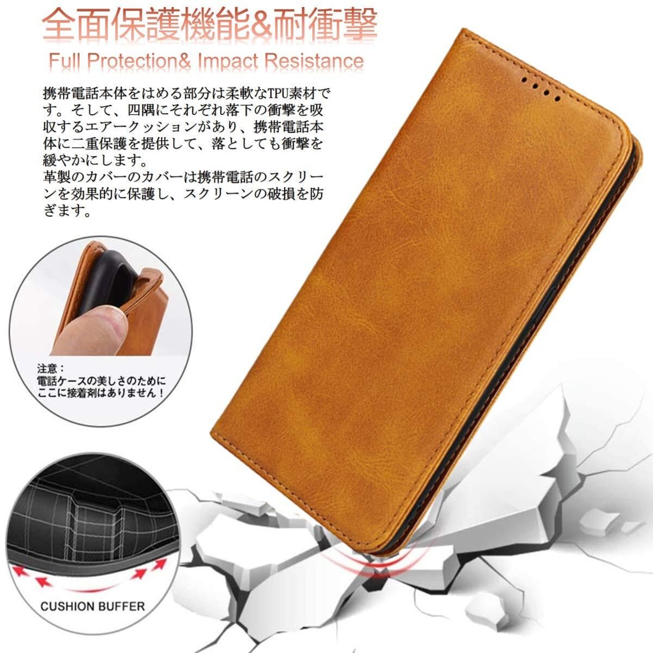 ①【上質な素材】外部は上質な合皮レザー素材を採用しており、放熱性が良く、傷や埃を防ぐことができます、滑りにくく、指紋、油分などもつきにくく。インナーケースは弾力性の柔軟黒TPU素材を採用しており、角までしっかり保護できるケースです、柔軟性があり本体への装着脱着も簡単です。衝撃吸収機能あり、しっかりの二重保護でお携帯を守り抜きます。