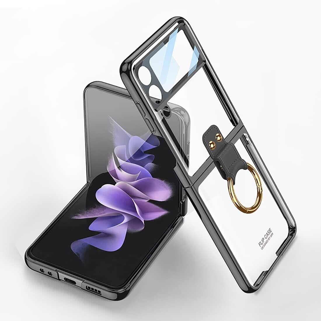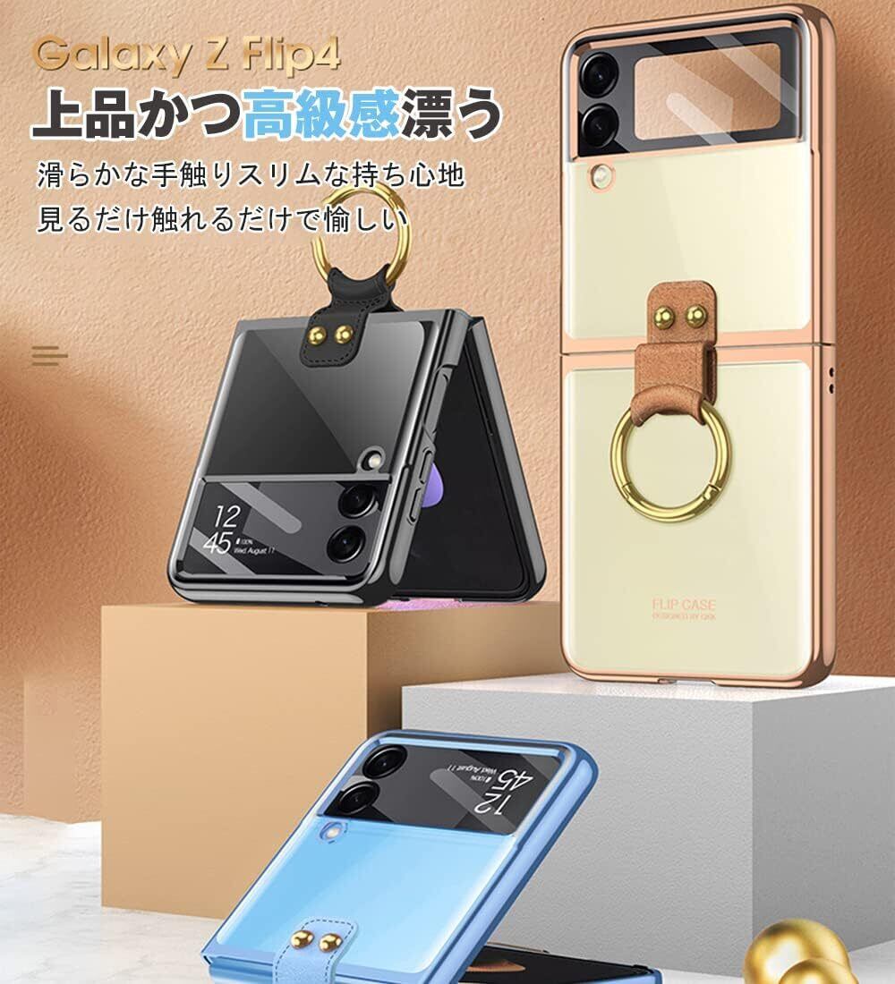 Galaxy Z Flip4 ケース クリア リング付き Samsung ギャラクシー Z Flip4 / docomo SC-54C / au SCG17 用 カバー 純正 おしゃれ OURJOY スマホケース 耐衝撃 電気メッキ アクセサリー 軽量 薄型 ストラップホール付き ワイヤレス充電 • ブラック