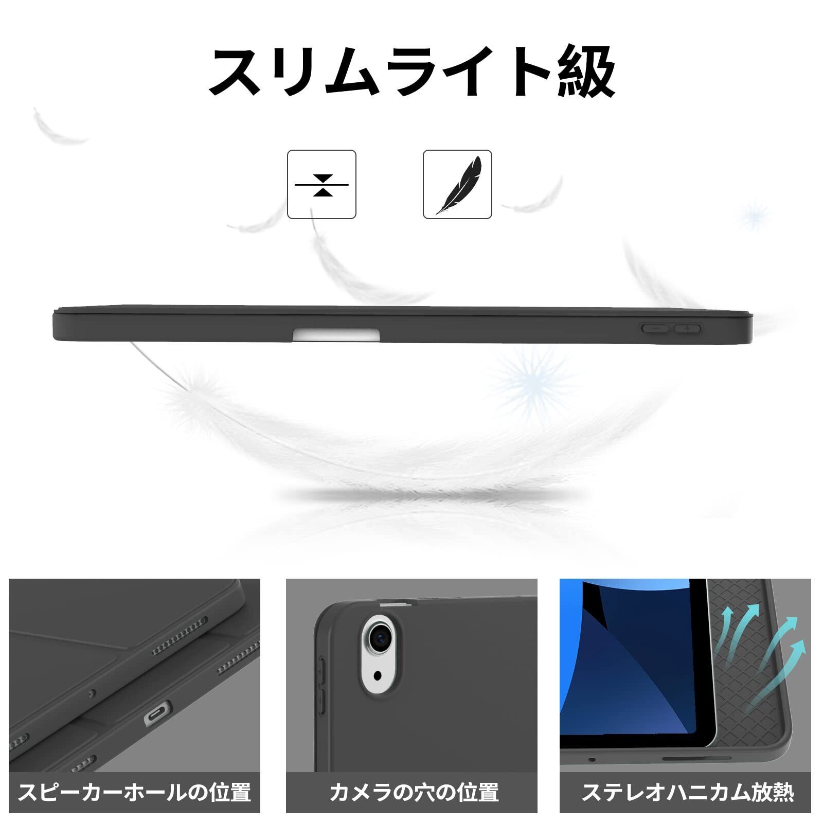 【人気商品】KenKe iPad Air 11インチ(M2) ケース 2024 iPad Air5/Air4 ケース 2022/2020 軽量 柔らかいシリコン TPU材質 ペン収納 iPad Air 第5/4世代 カバー 3段階折り畳み可 スタンド マグネット付き 自動スリープ機能 Apple Pencil 収納可能 iPad Air 5/4 10.9インチ に対応 (ダークブラック) | ニコニコSHOP