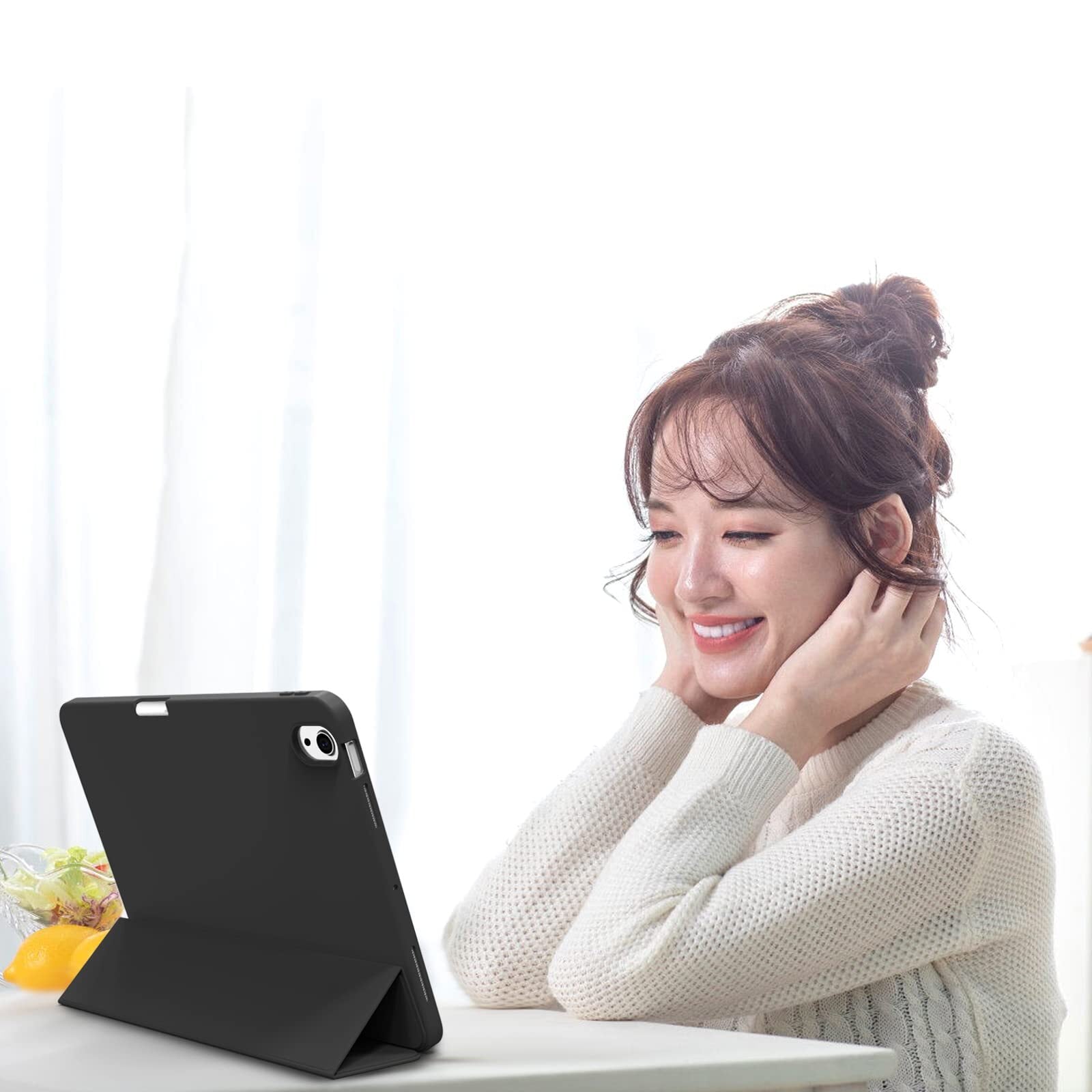 KenKe iPad Air 11インチ(M2) ケース 2024 iPad Air5/Air4 ケース 2022/2020 軽量 柔らかいシリコン TPU材質 ペン収納 iPad Air 第5/4世代 カバー 3段階折り畳み可 スタンド マグネット付き 自動スリープ機能 Apple Pencil 収納可能 iPad Air 5/4 10.9インチ に対応 (ダークブラック)