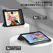 【便利なスタンド機能】 iPad ケースはスタンド機能を備えております。横置きにも対応でき、お好きな角度に固定して、お両手を解放します。動画視聴、読書、チャット、WEBなどの時にすごく助かりますよ。