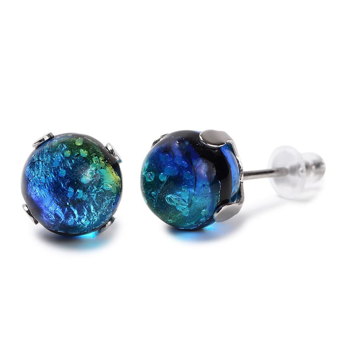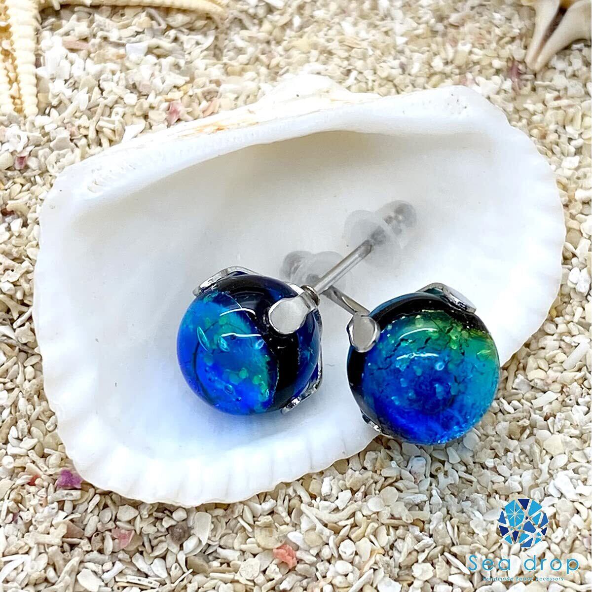 Sea drop 光る ホタルガラス スタッドピアス ケラママリン 蓄光 レディース ステンレス 金属アレルギー対応 両耳用 シルバーカラー [073et-s]