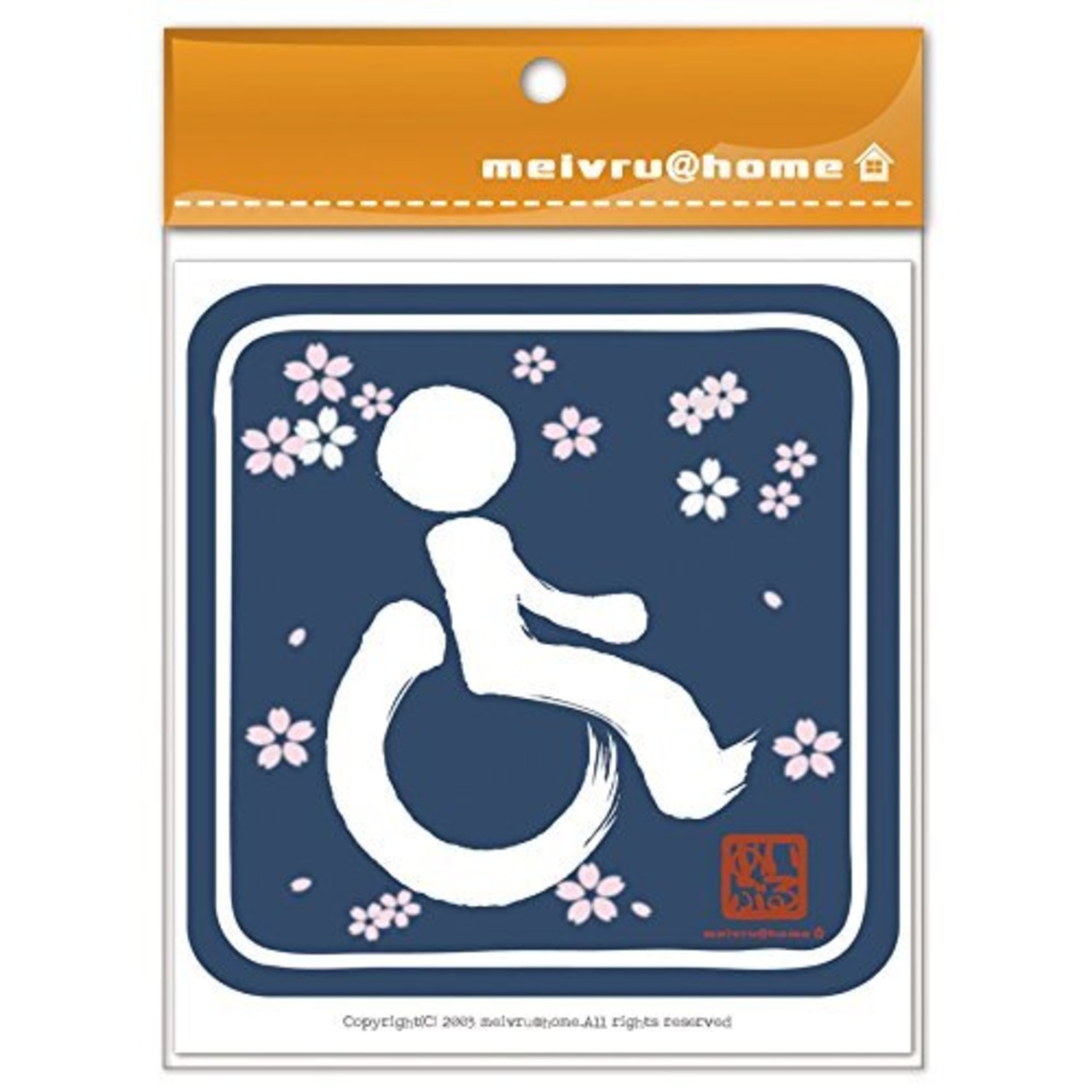 車椅子マーク ステッカー/車いす 身障者マーク 車イス 福祉車両(和柄/紺)