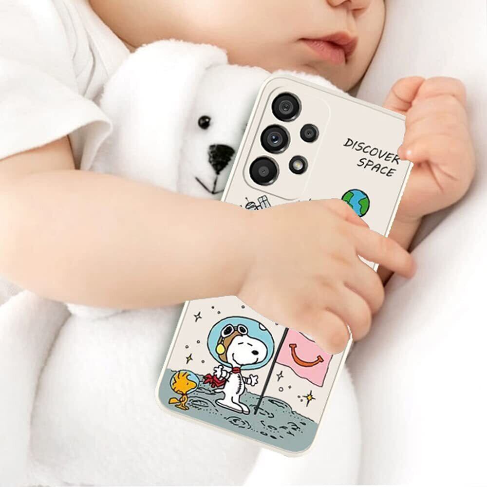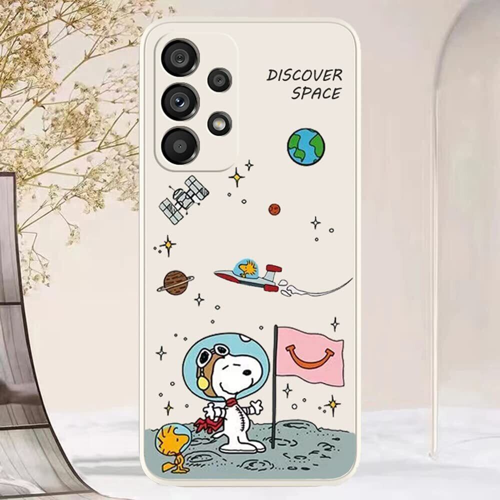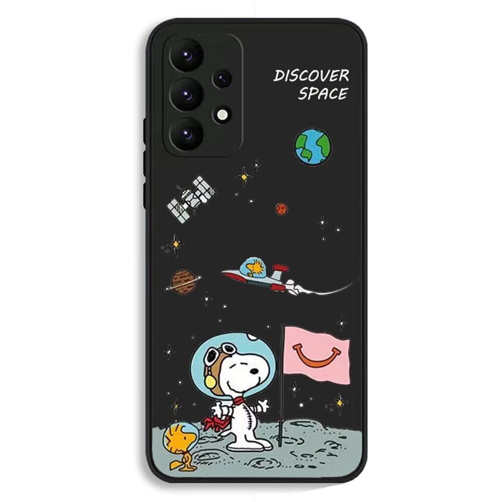Galaxy A53 スヌーピー ギャラクシー スマホケース Snoopy 宇宙探測 かわいい 衝撃吸収 TPU 指紋防止 リキッド シリコン キャラクター 携帯カバー レンズ保護 携帯ケース(ブラック)