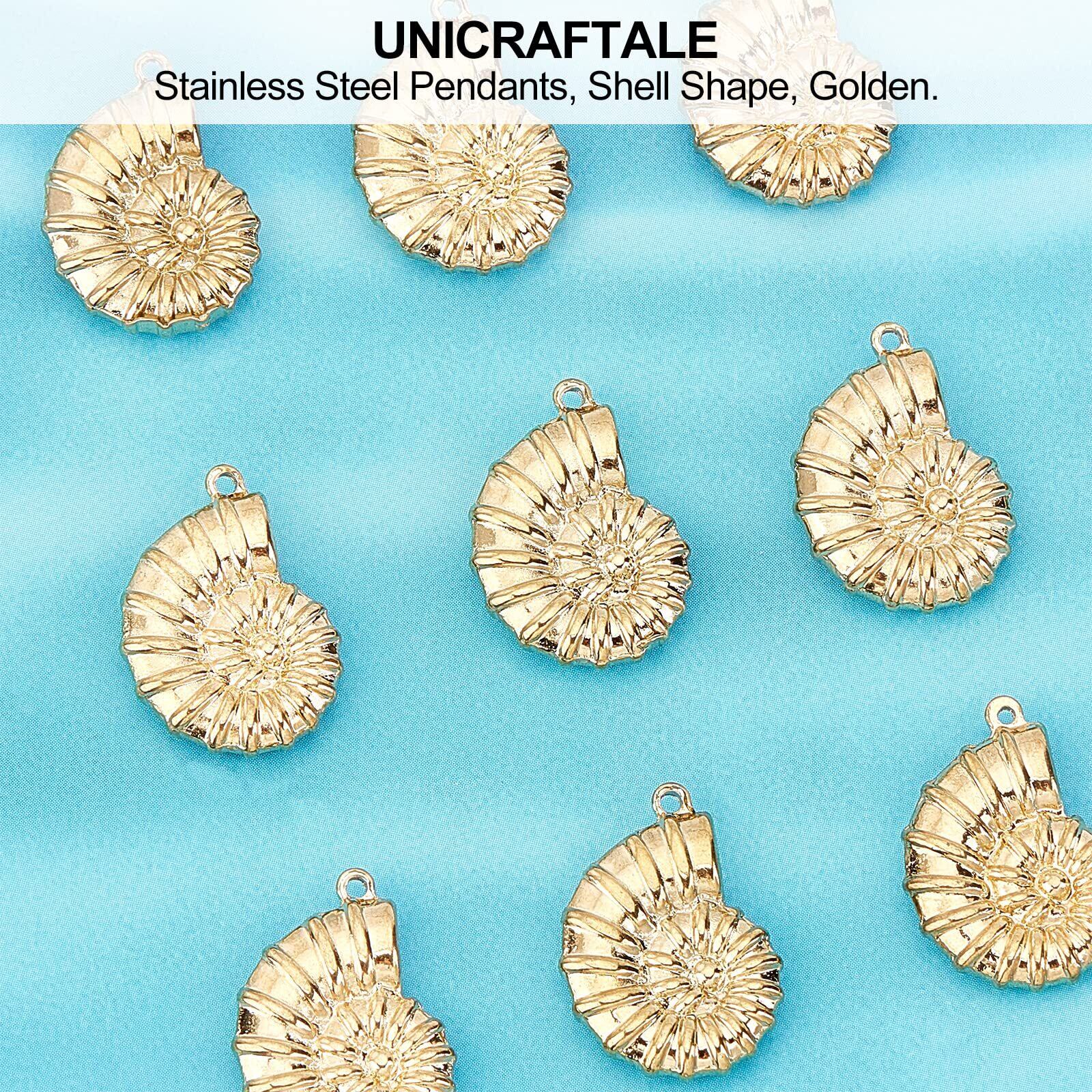 UNICRAFTALE 10個 巻き貝 シェル チャーム 貝殻 海 マリンチャーム ゴールド 304ステンレス鋼 海洋シリーズ ビーチ小物 手芸材料 ハンドメイド ネックレス ブレスレット アクセサリーパーツ ストアーズクラブ 手作りキット DIY飾り物