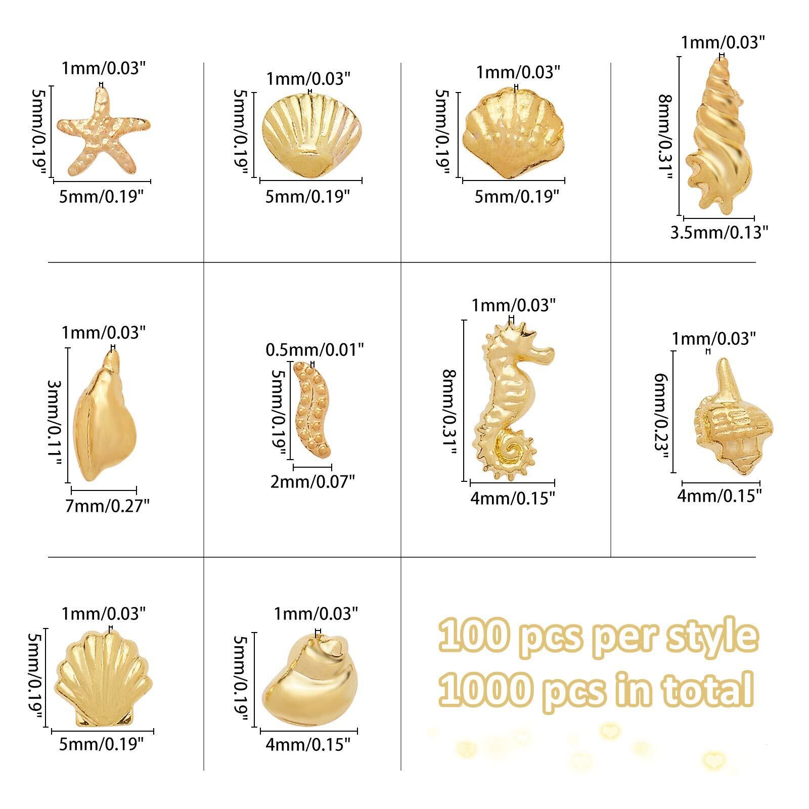 OLYCRAFT 1000個10種類 メタルパーツ 合金レジン封入 貝殻 海馬 ヒトデ ミニ 約2~8mm メタルネイルパーツ つぶ貝 夏 ミニ ネイルデコパーツ レジンパーツ ネイルパーツ ネックレス イヤリング アクセサリー ゴールド