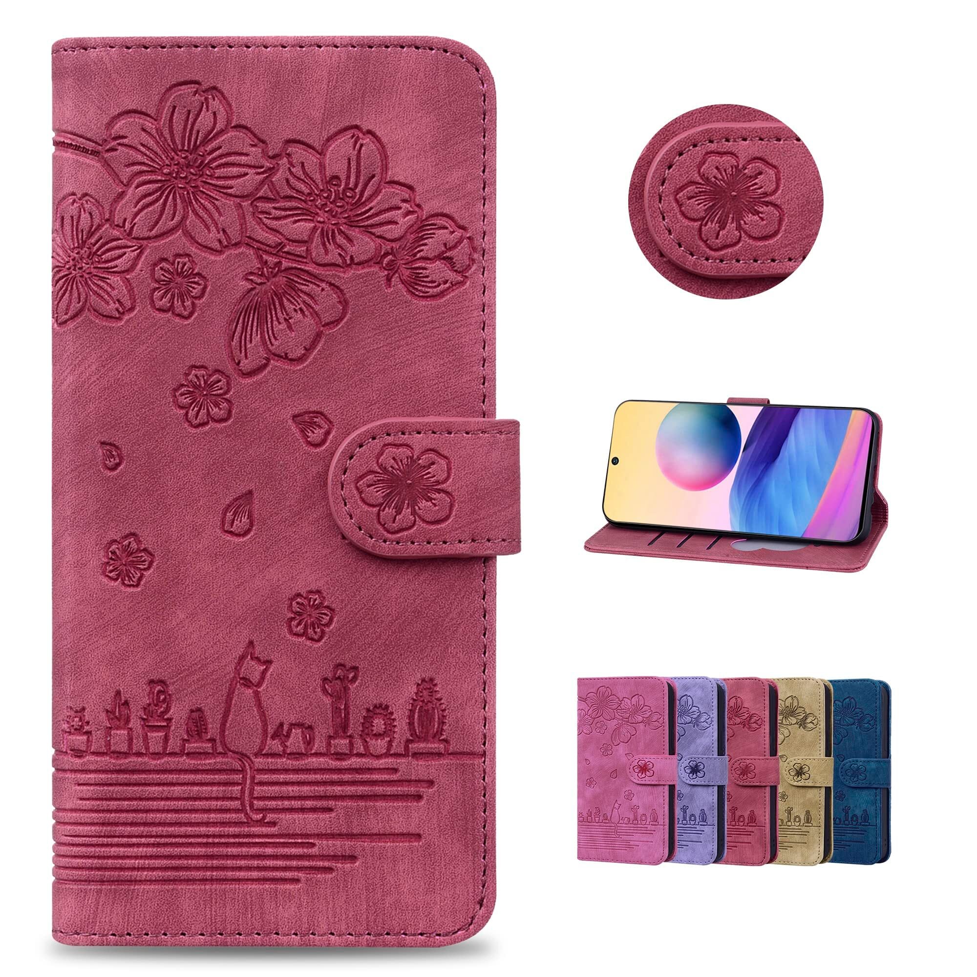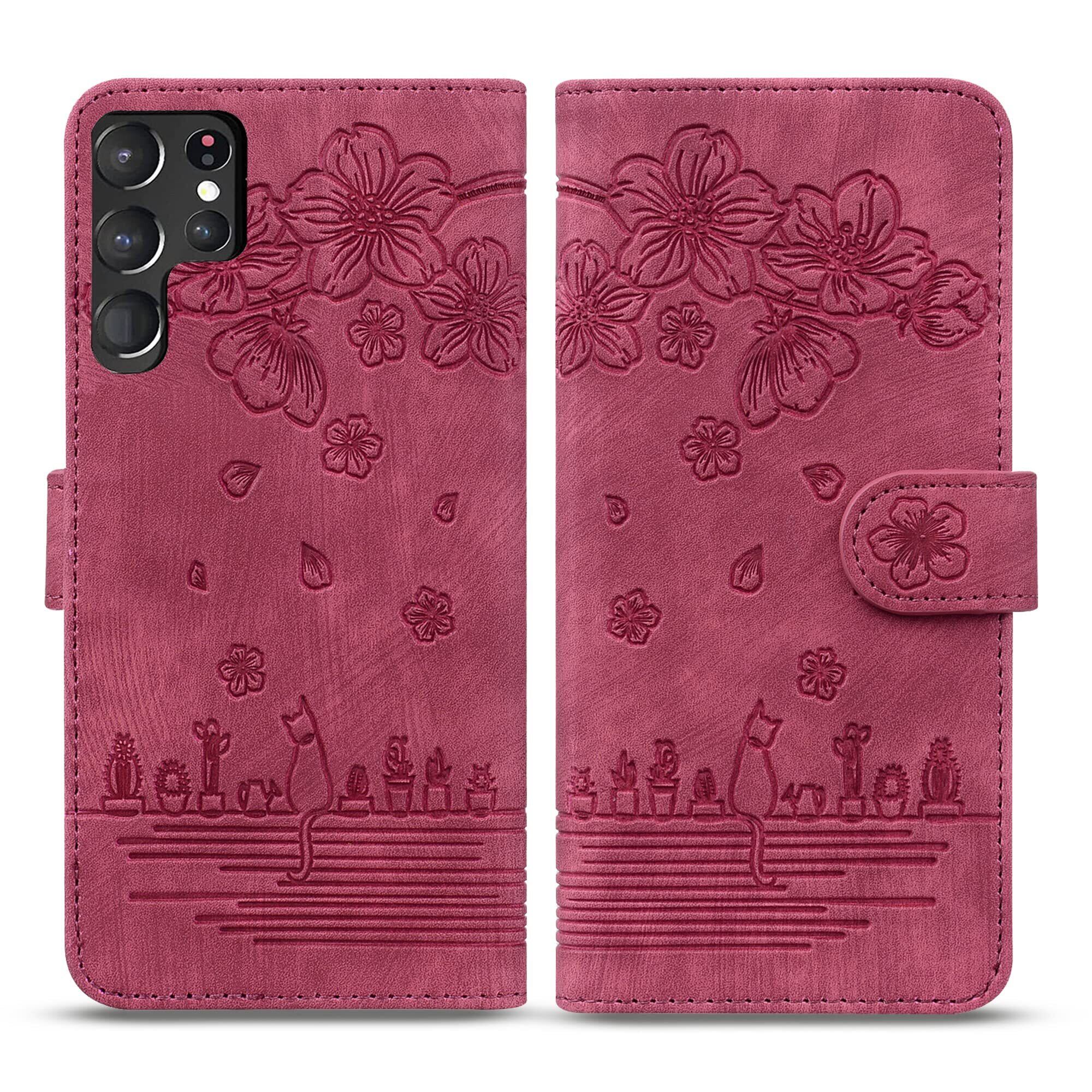 Galaxy S22 Ultra 5G ケース [Rosbtib] ギャラクシーS22 Ultra ケース 内蔵 マグネット カードポケット スタンド機能 薄型 軽量 PUレザー Samsung S22 Ultra 手帳型 スマホケース 子猫のパターン ケース Samsung Galaxy S22 Ultra SC-52C SCG14 対応 (赤)