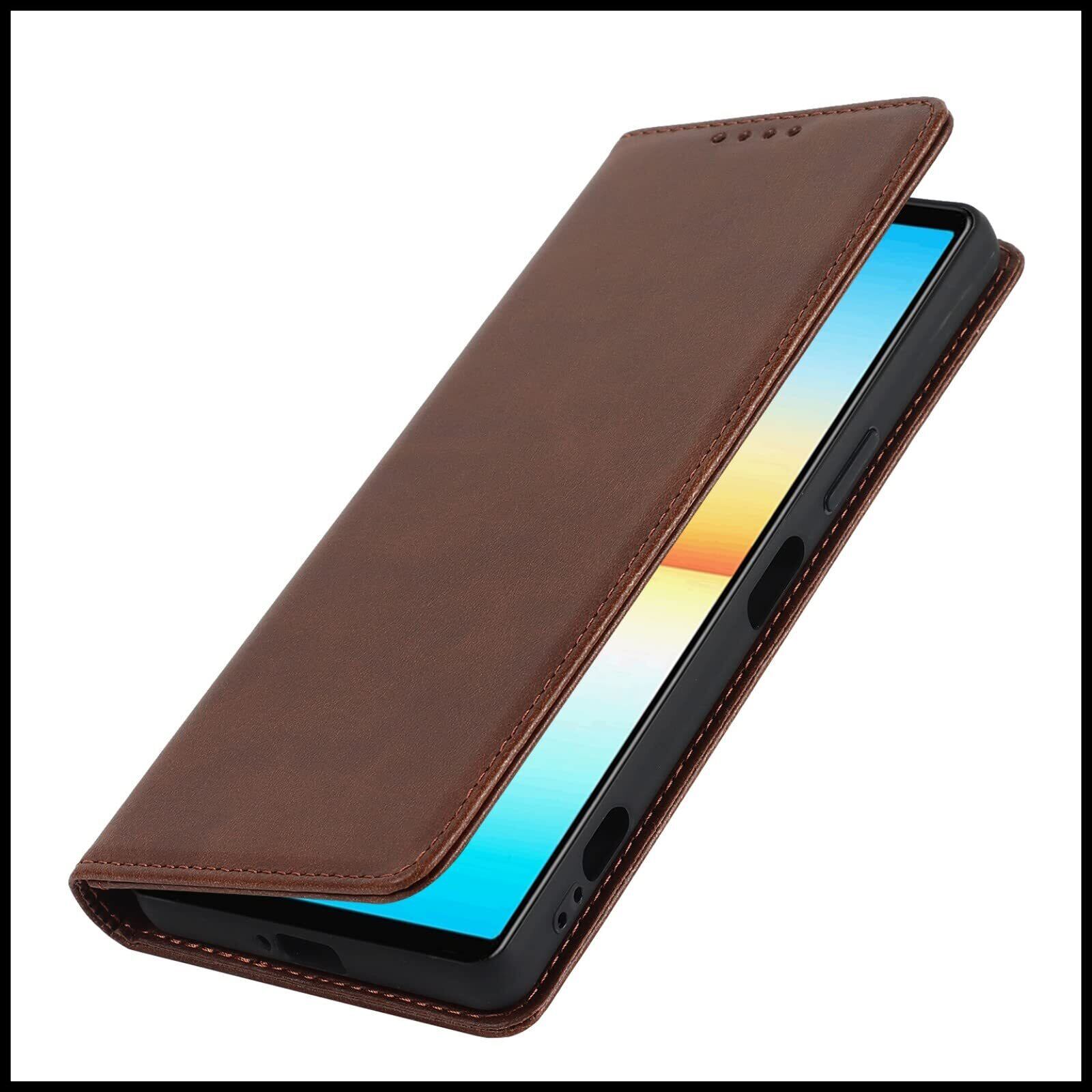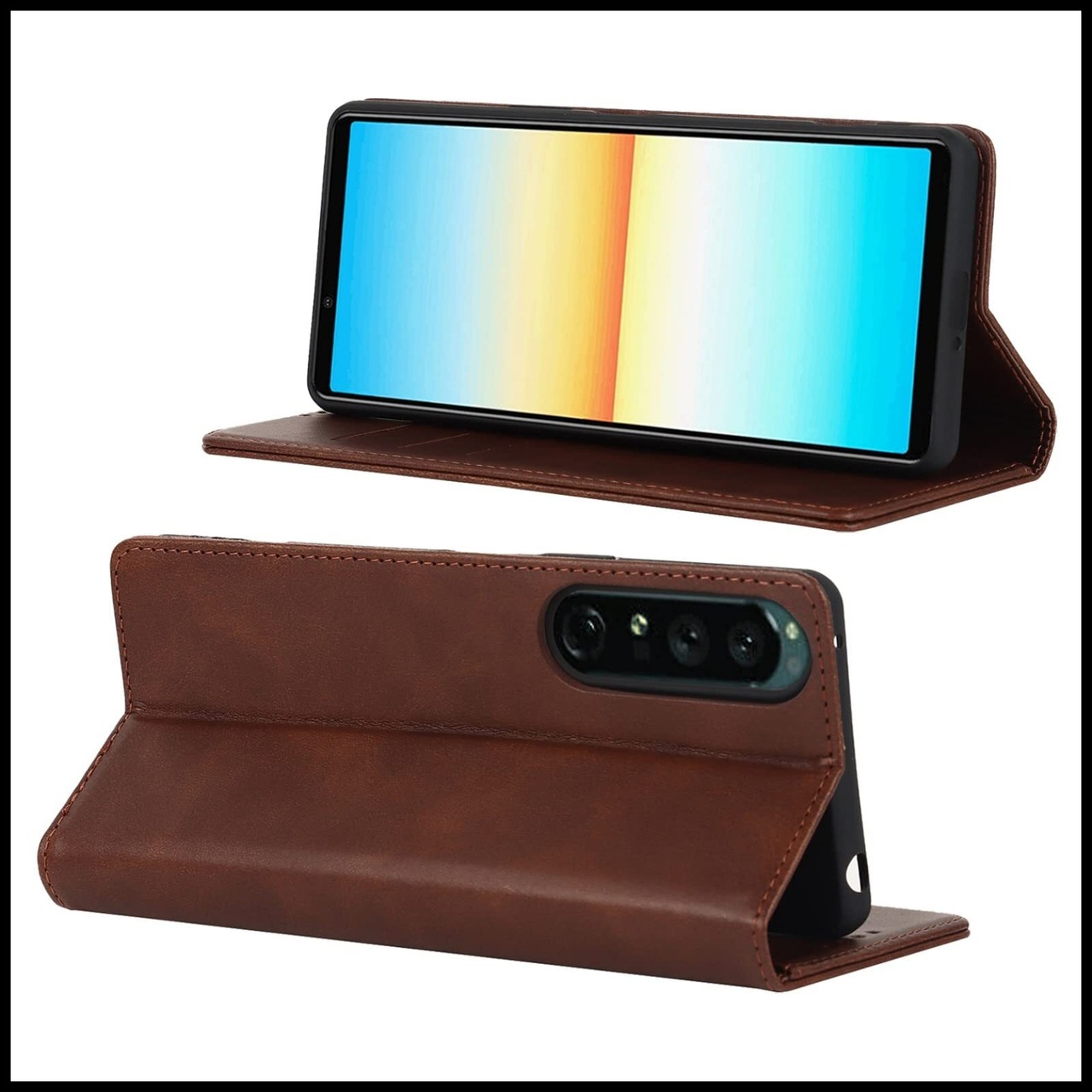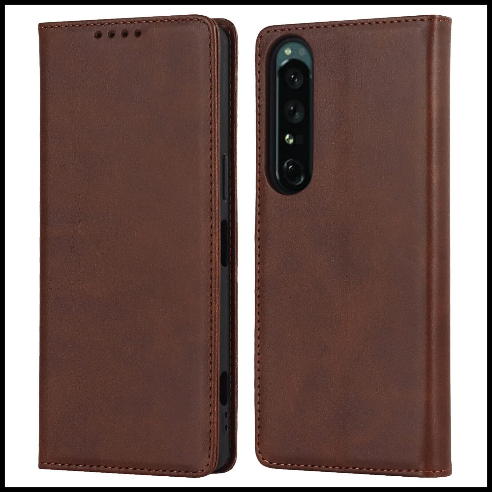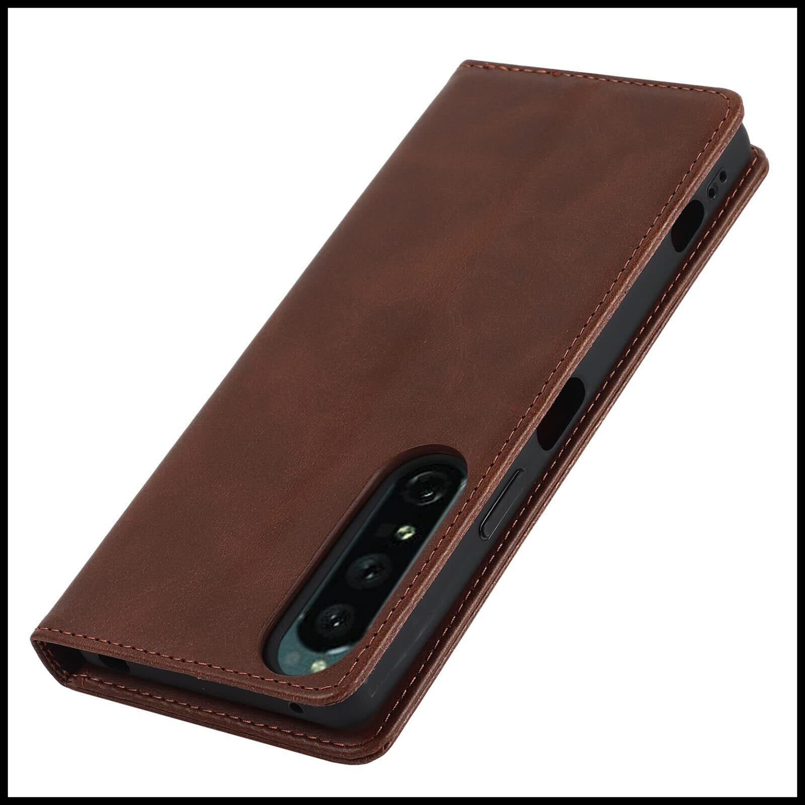 Sony Xperia 1 IV ケース 手帳型 FROLAN スマホケース レザー 携帯カバー マグネット式 カード収納 軽量 汗や指紋防止 耐衝撃 スタンド機能 着脱しやすい (ダークブラウン)