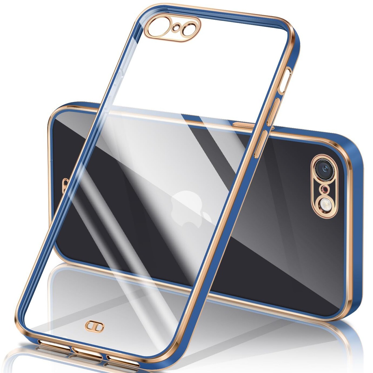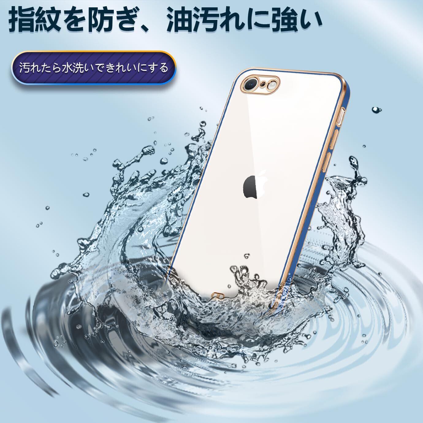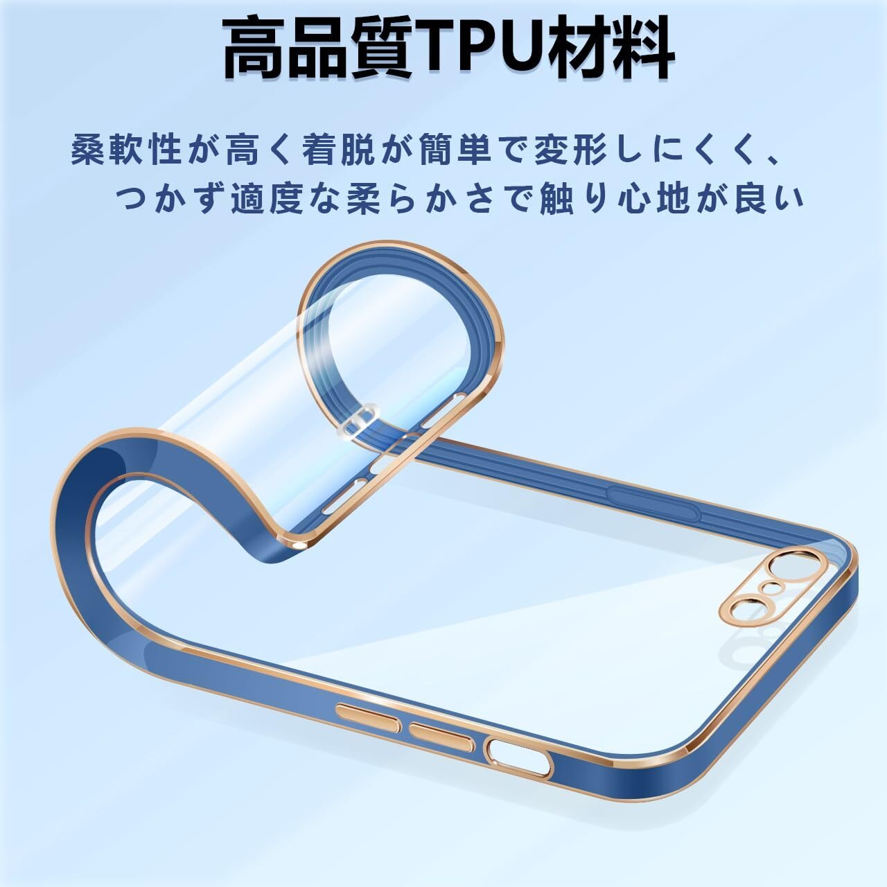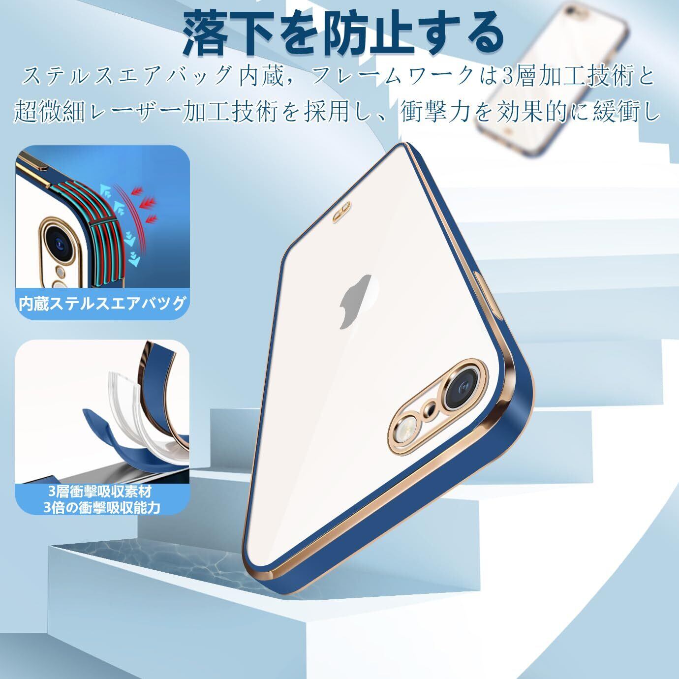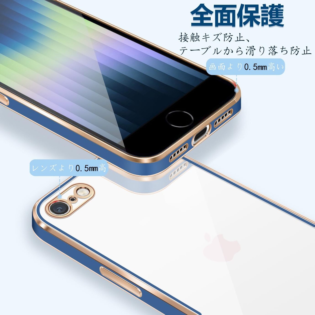 iPhone SE3 ケース 第3世代 iPhone SE2 ケース 第2世代 クリア 透明 耐衝撃 iPhone7 ケース iPhone8 ケース メッキ加工 薄型 軽量 ストラップホール付き 落下防止指紋防止 レンズ保護 ワイヤレス充電 アイフォンSE 2/SE 3 カバー(ブルー)