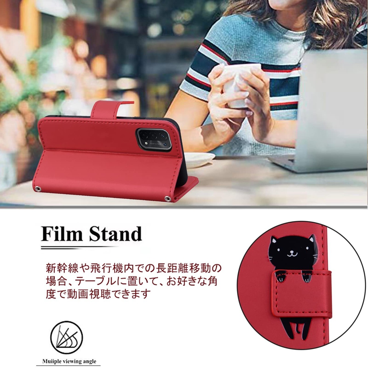 Libero 5G Ⅲ ケース手帳型 リベロ5giii 手帳型ケース ZTE libero 5g iii ケース スマホケース 手帳 スマートフォン カバー 携帯ケース ZTE libero case 手帳型携帯カバー 肌触り良いレザー 柔らかいTPUケース カード収納 財布型 ベルトマグネット スタンド機能 猫 かわいい 動物柄 薄型 防水 ノート型 人気 おしゃれ 男女兼用 黒 (ZTE Libero 5G III 対応) レッド